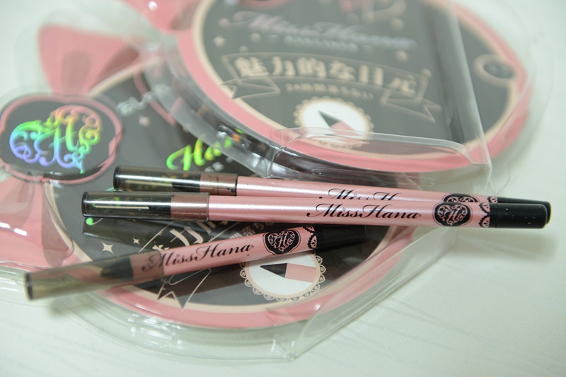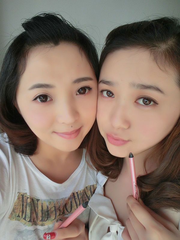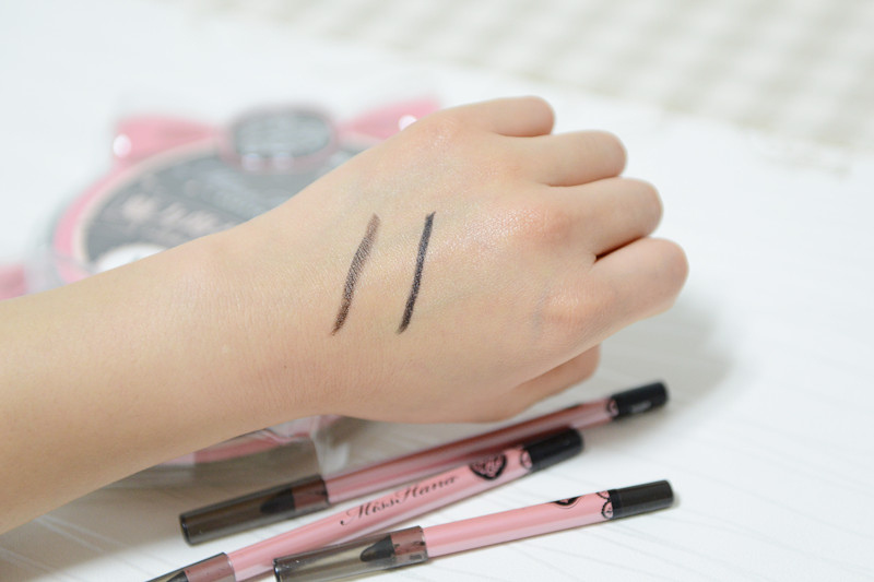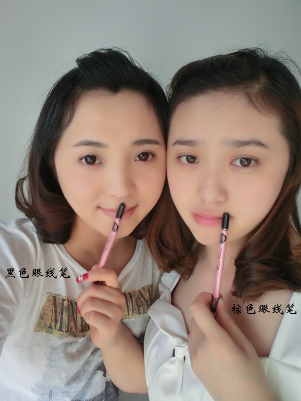 我用的是Miss Hana不晕染眼线胶笔-黑色,抹茶萌果用的是星光棕眼线胶笔。