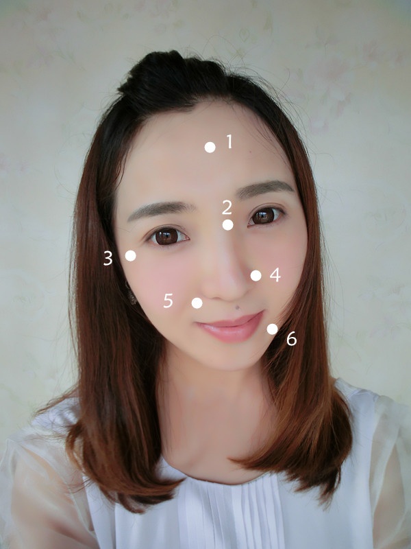 为了更好的找准6大皱纹区域,我做了个图,我自己对号入座了: