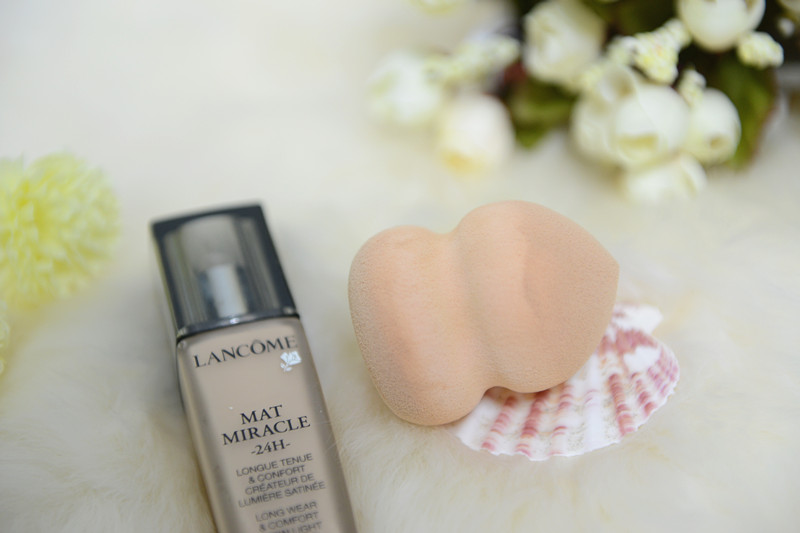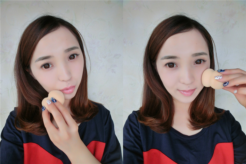 葫芦球球蘸水打湿,沾取适量粉底液上底妆
