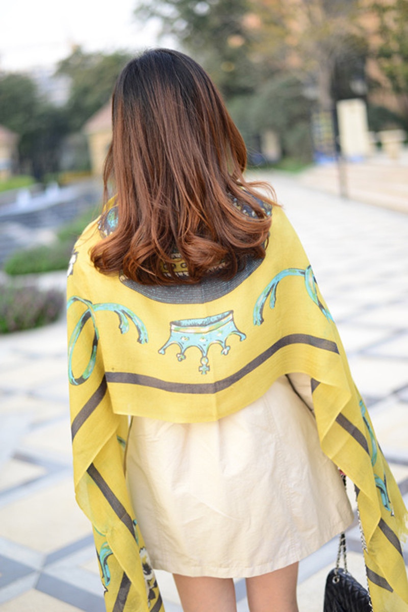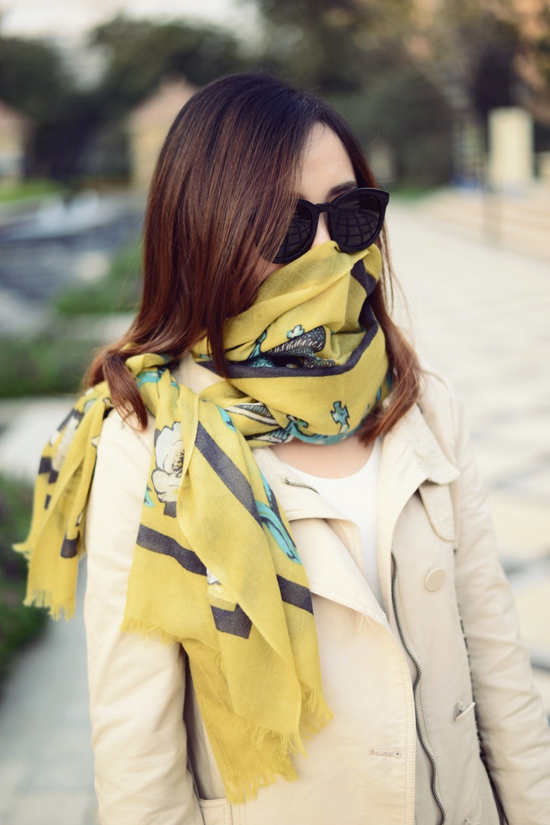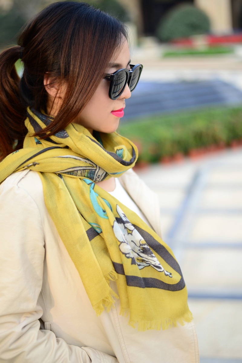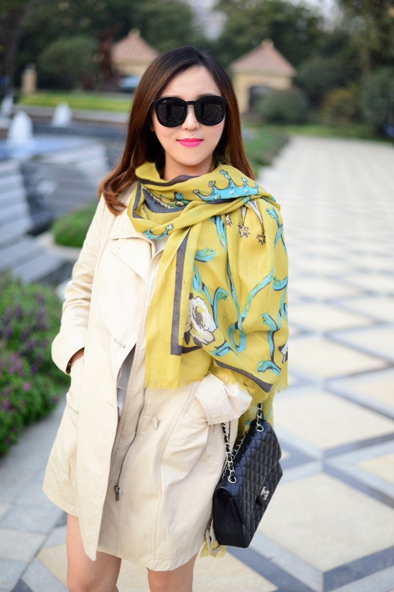 点,哈哈,围巾来装饰一下,温暖并有感觉了,黄色是暖色调,走在出去挺抢眼的,不是那种乍亮乍亮的黄色,