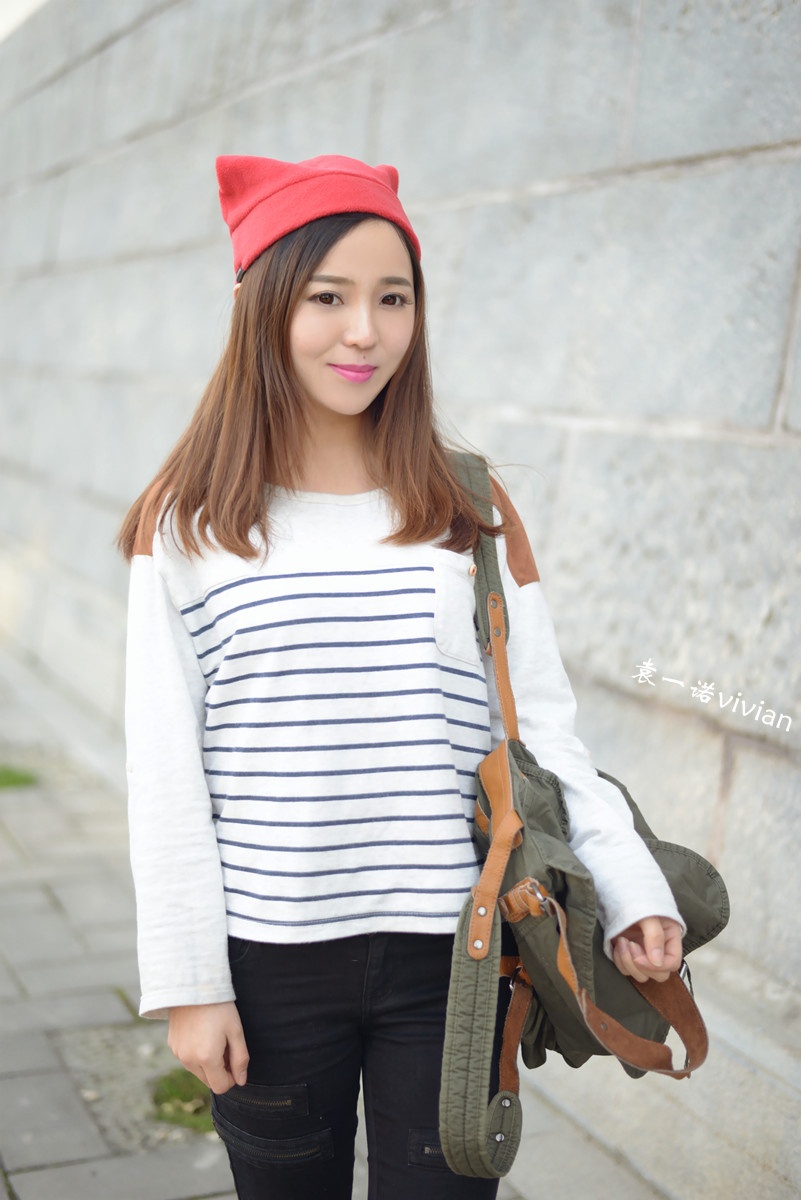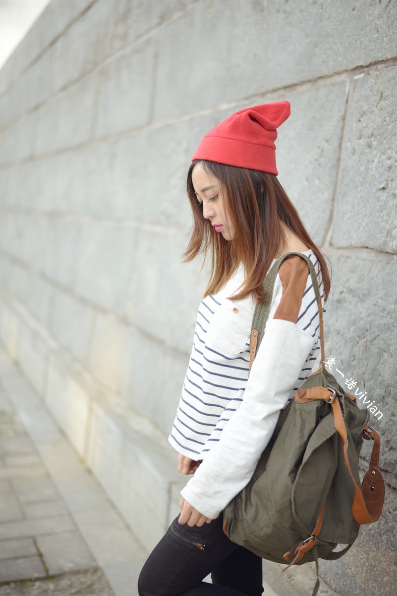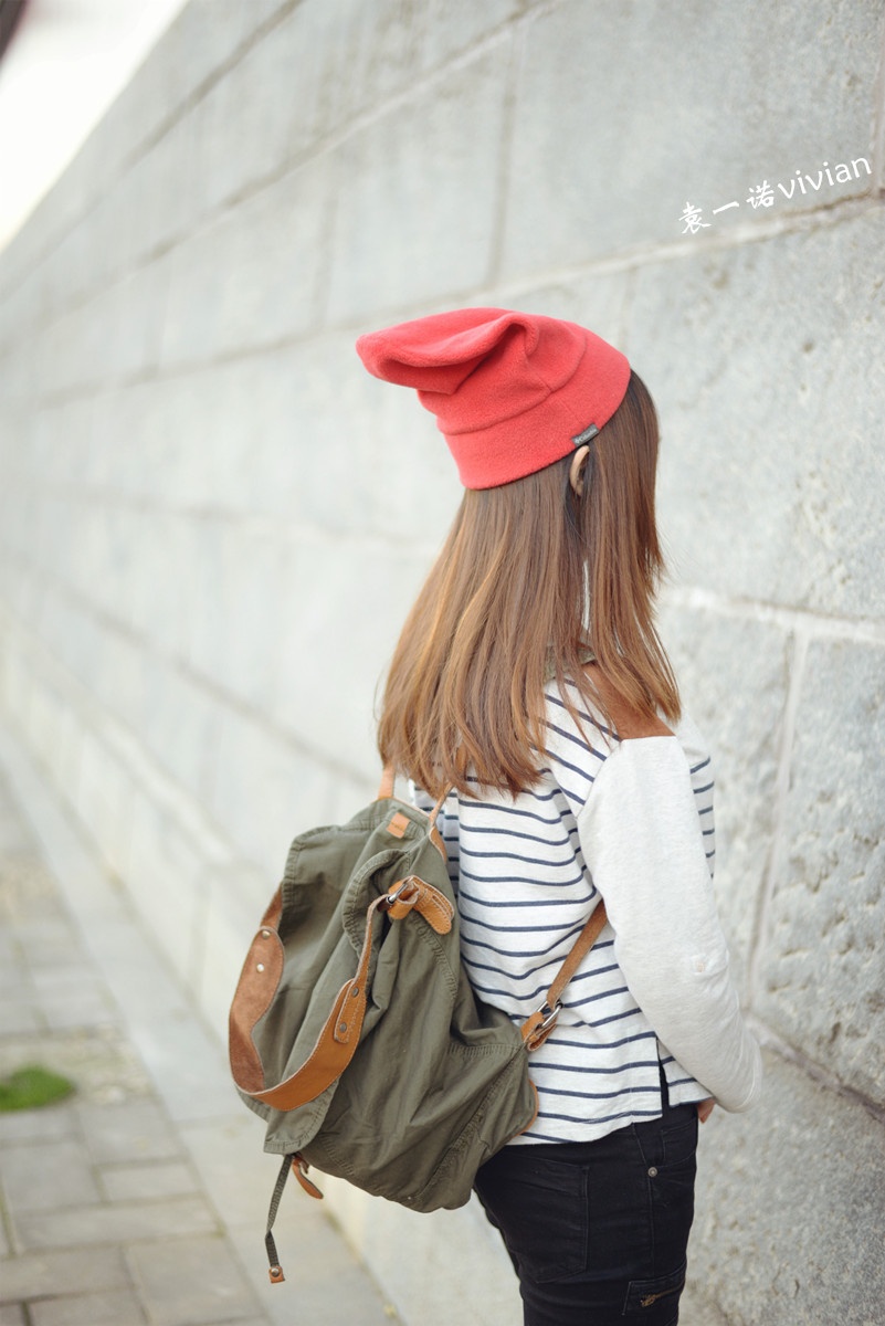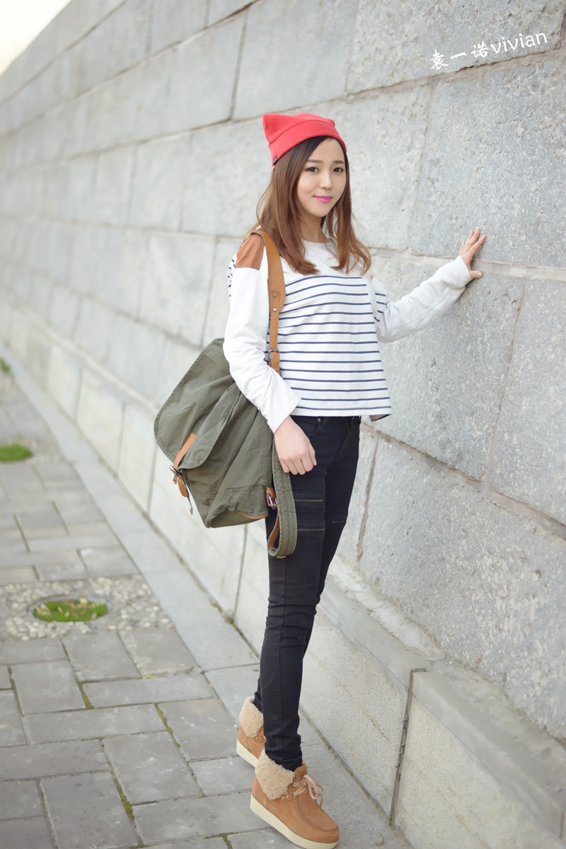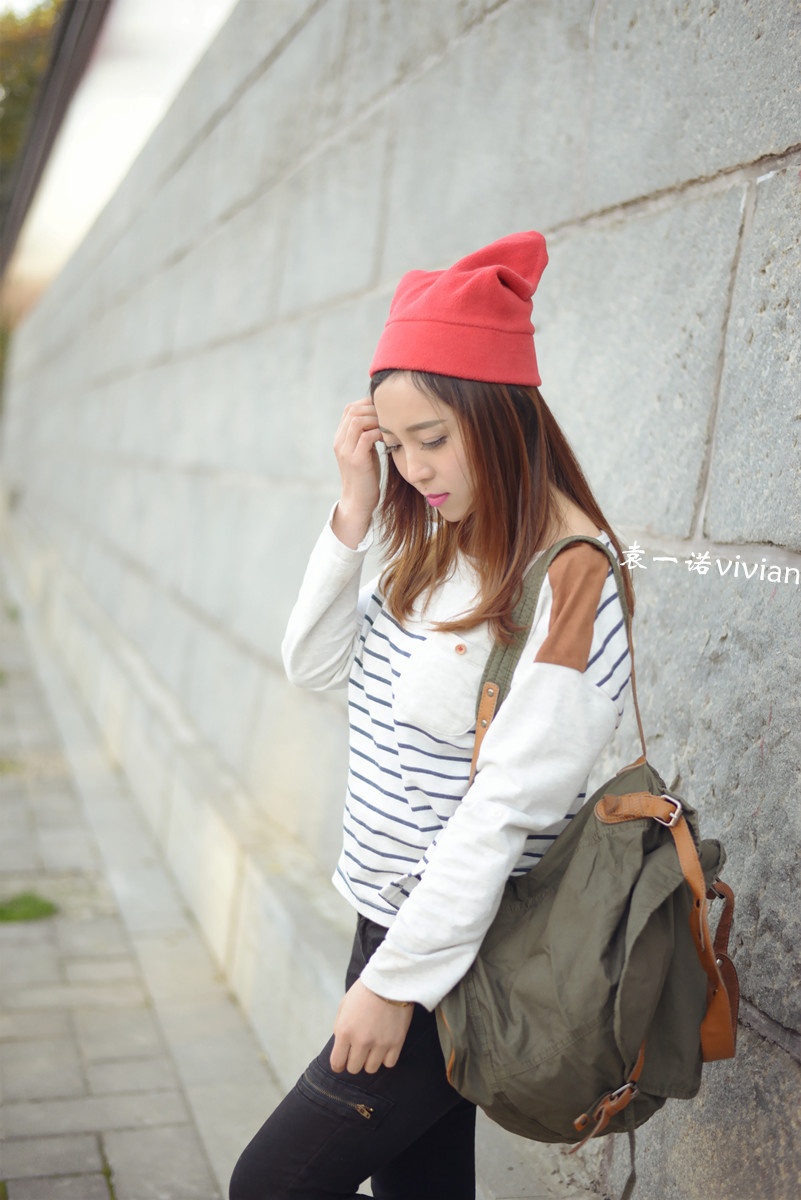微博发了几张图后都说这组照片有几分韩式街头风的赶脚,不管自己走出了那个味道没有,不得不说还真是挺喜欢这套行头的,帽子,裤子,包包,条纹上衣都算我迷恋的韩式风啦。