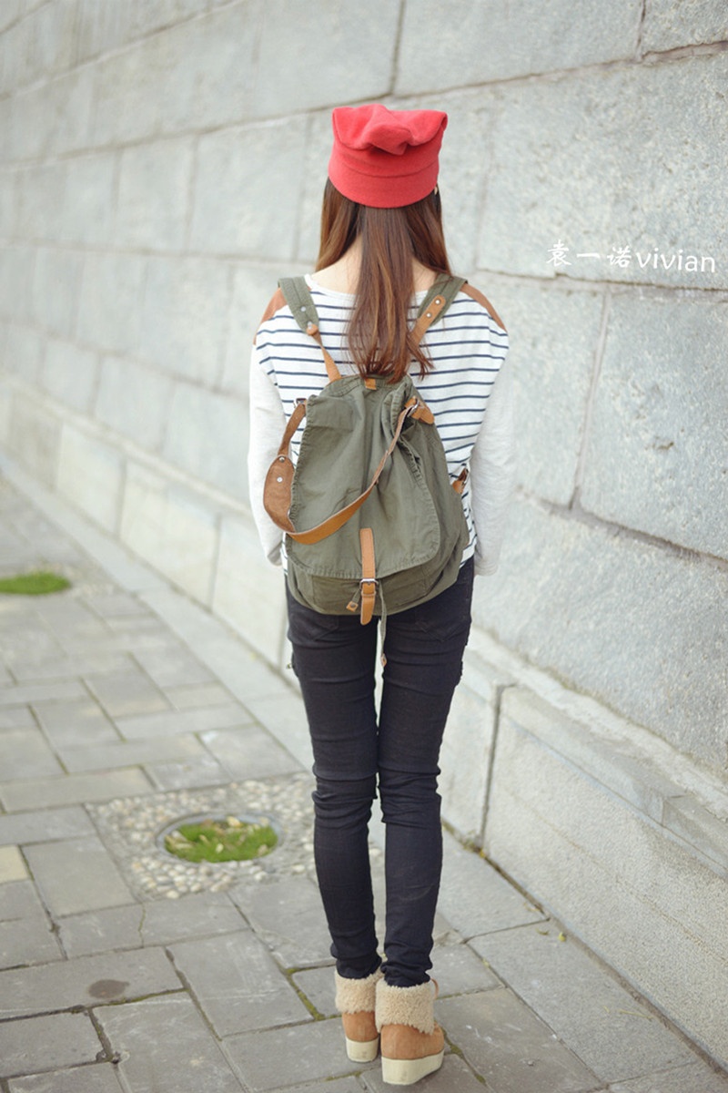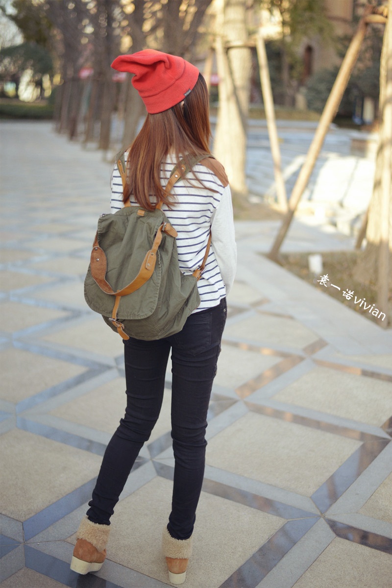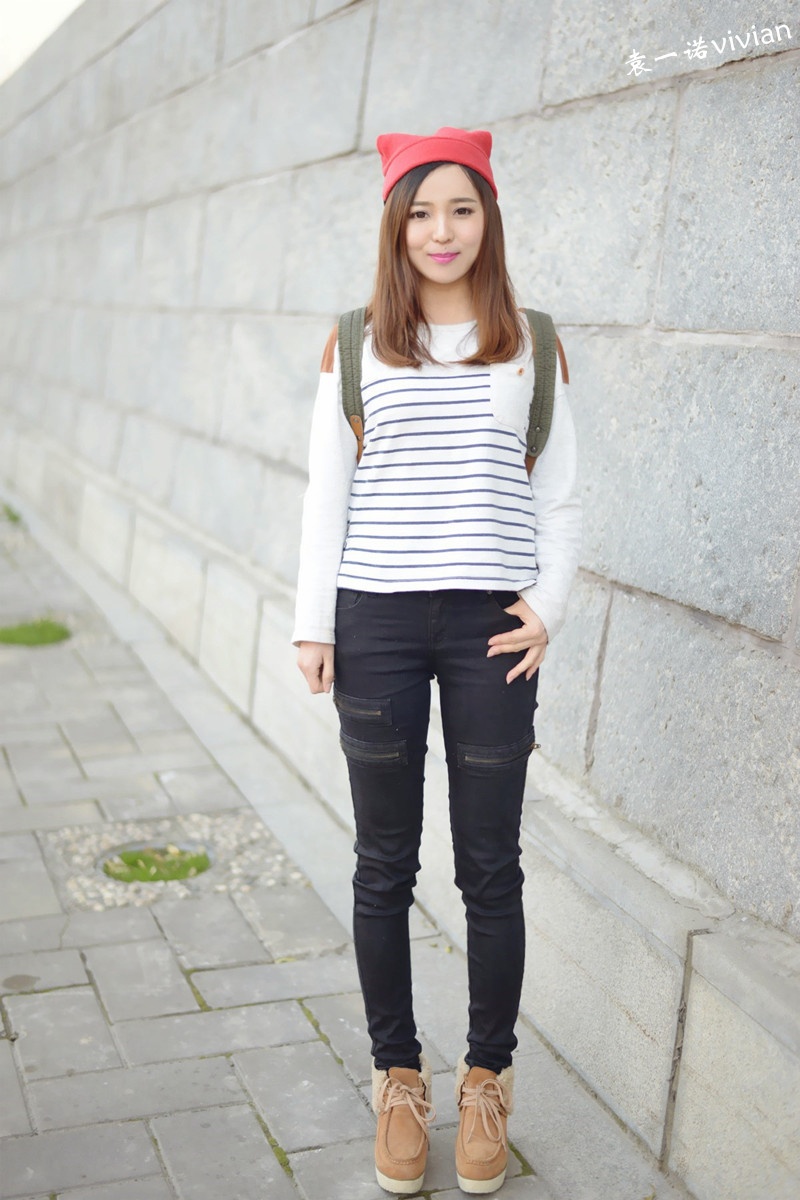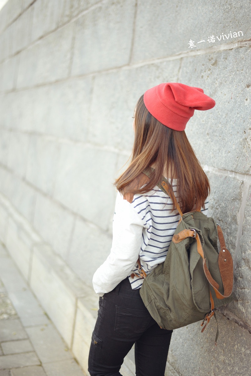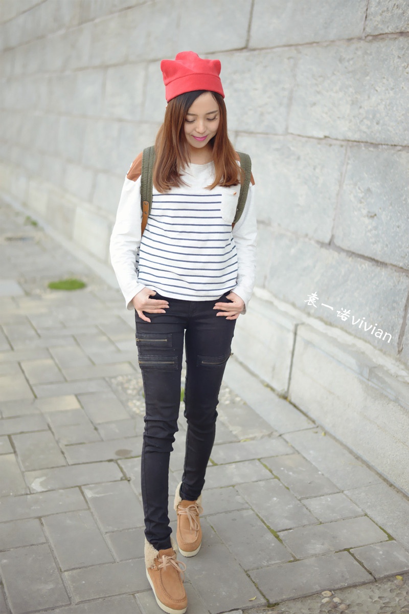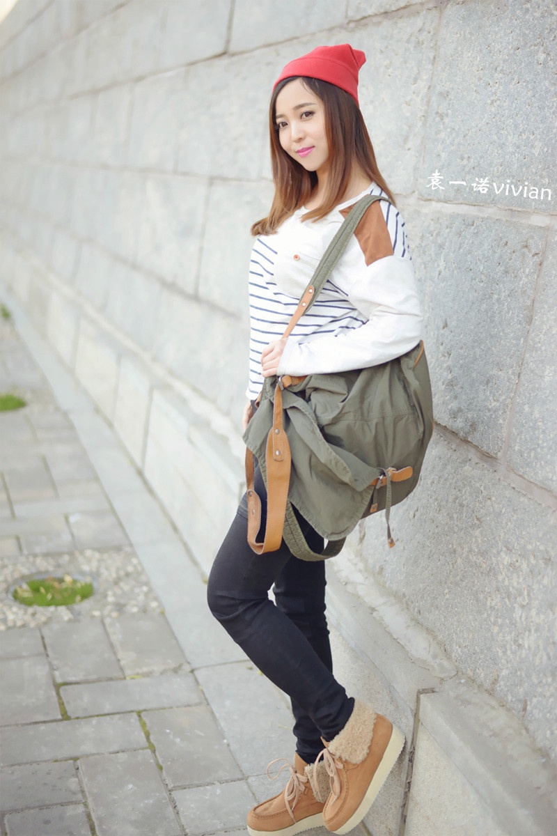 微博发了几张图后都说这组照片有几分韩式街头风的赶脚,不管自己走出了那个味道没有,不得不说还真是挺喜欢这套行头的,帽子,裤子,包包,条纹上衣都算我迷恋的韩式风啦。