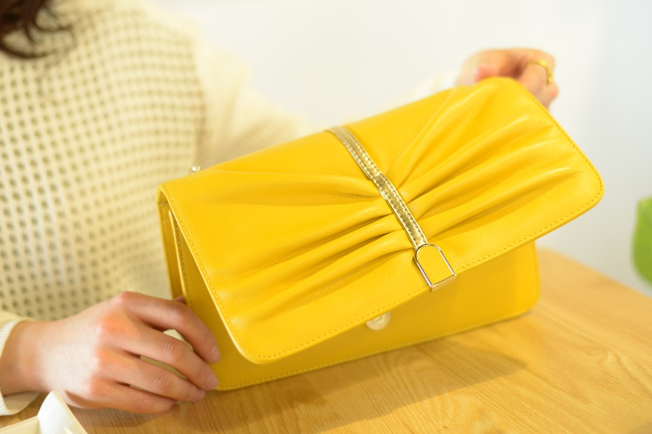 所以我会很用心的选择我的包包。身上的这包包是精致款的小包,柠檬黄甜而不腻的亮色视觉冲突,增添了暖色调的甜美感,尤其适合浪漫的节日,恰到好处。