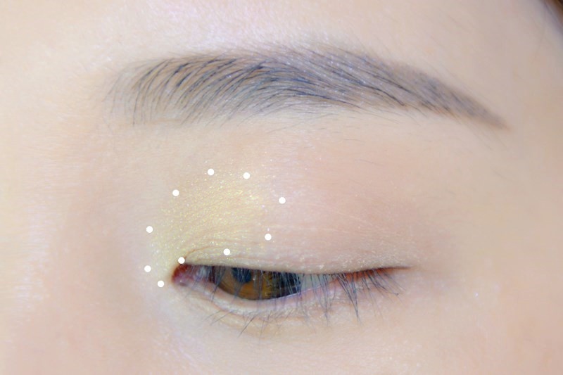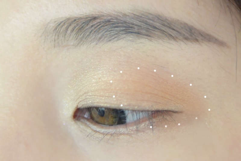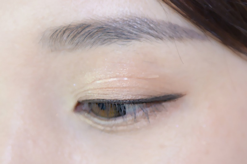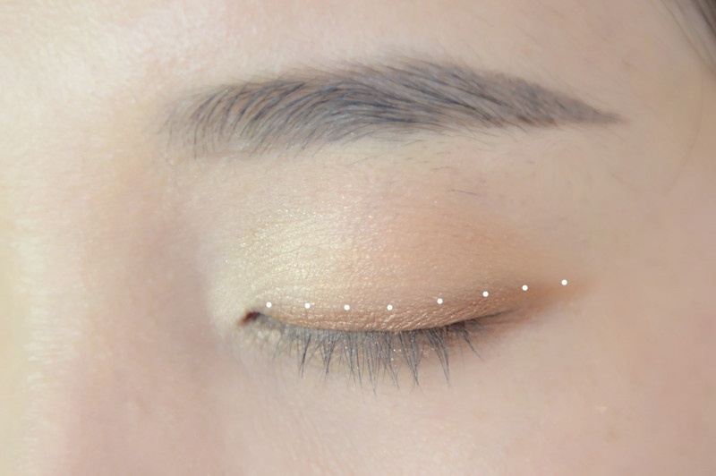 3号色,沿着平时画眼线的上方画起来,不要太粗,会让我自己的小眼睛看着大一些。
