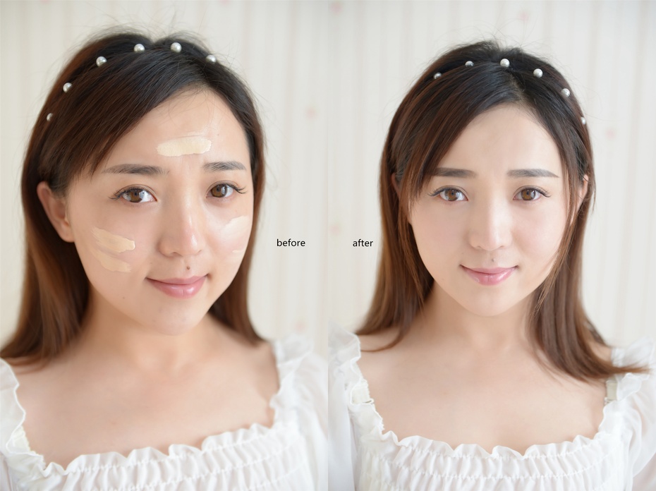 不管怎样,说一下自己的感受,很轻薄,轻薄也照样可以遮住毛孔,轻盈,肉眼看着很自然,不是假面具的感觉,光泽度很透明感很满意