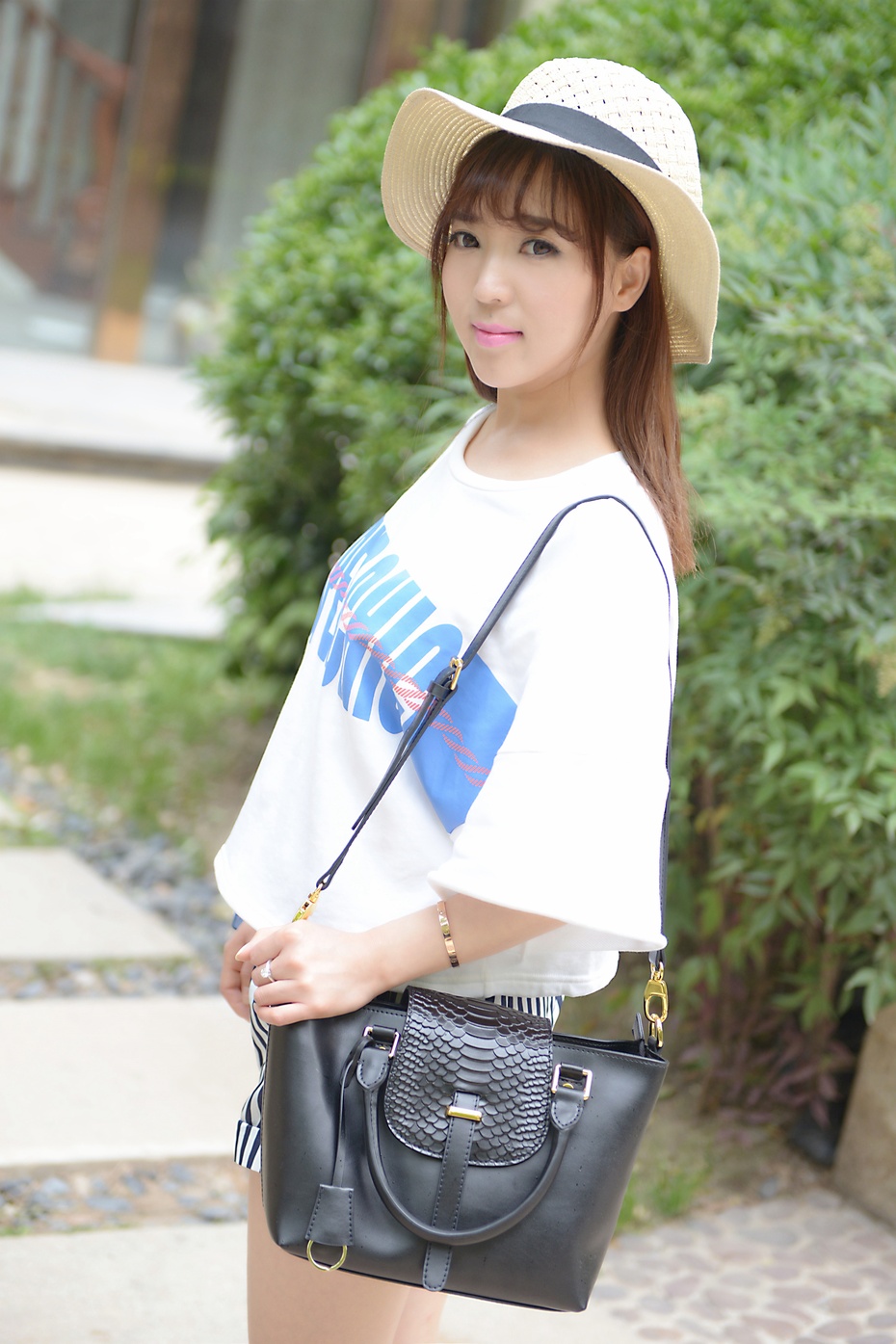 一款黑色的包也挺适合这个夏季的,也可以有几分清新味道的~