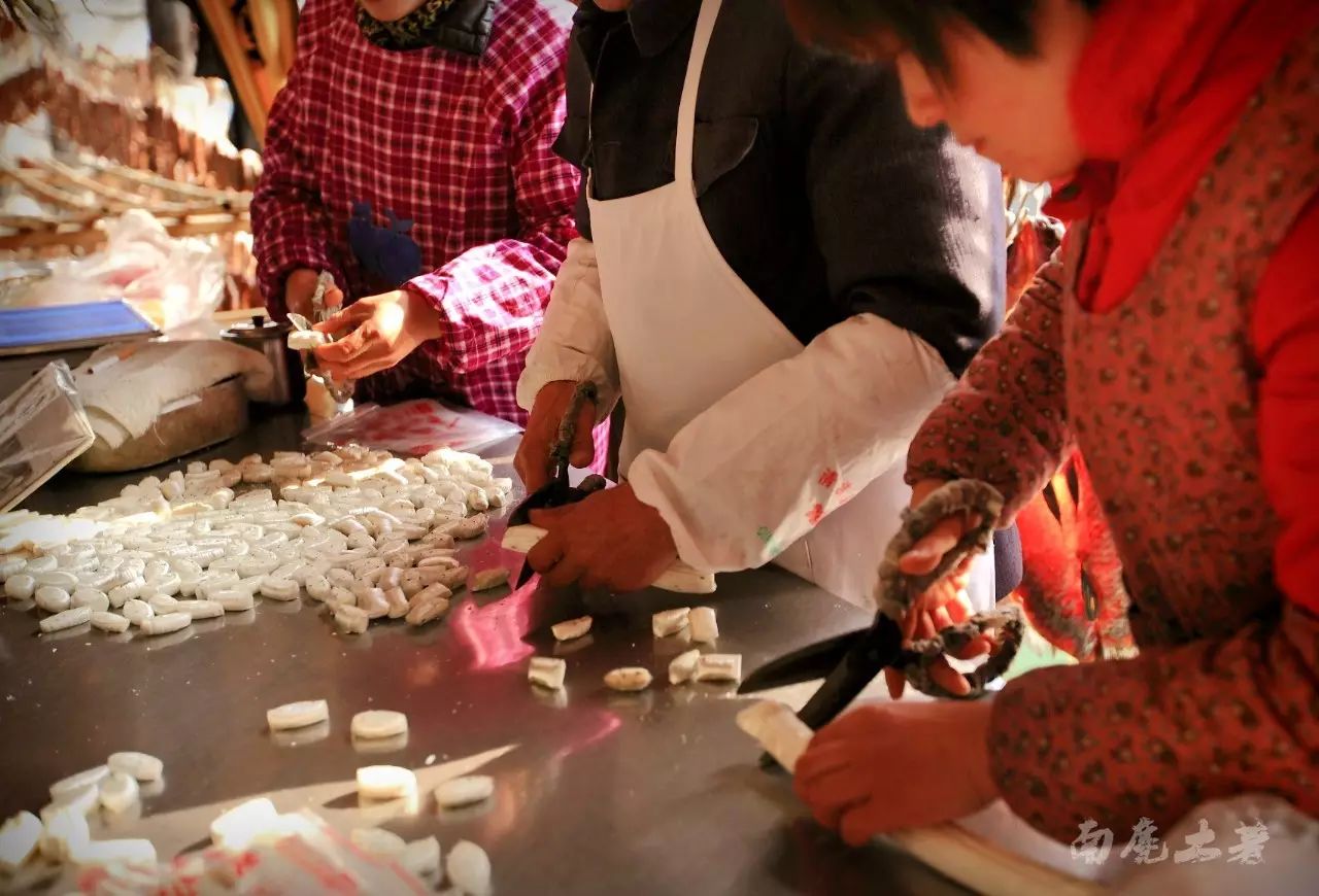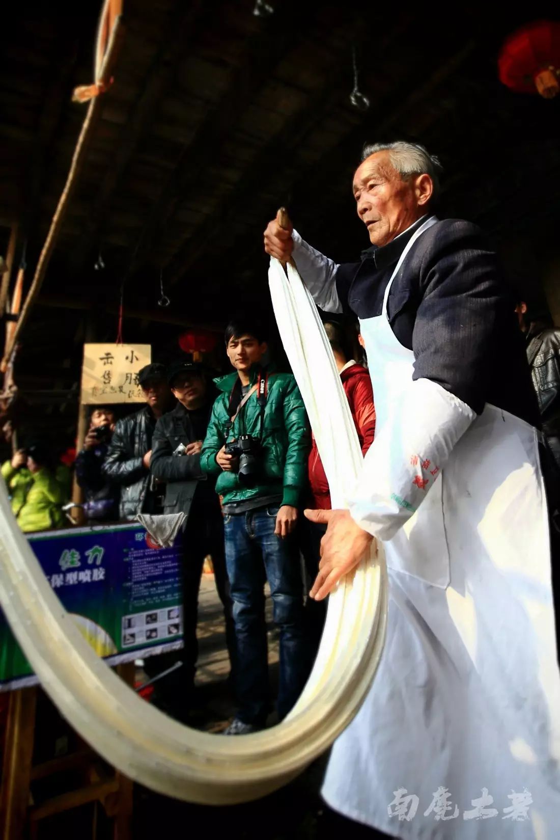 扯白糖起源于明朝年间,是用饴糖与白糖溶解后熬成拔丝状,然后趁糖还未硬化时拉扯而做成的一种糖果,由于在糖中溶入了清淡而有鲜味的饴糖,甜而不腻,又富有营养价值。镇上最著名的祖传“扯白糖”店家陈老伯,80多岁了,精神闪烁,言语清晰。陈老伯说:由于这个行业挣不到钱,儿子们都去从事其他行业了,这是祖宗传下来的手艺,不想让它失传,他一直还在坚持着。粗大滚烫的糖条在师傅手里上下翻飞,自如得像是绕着毛线。
