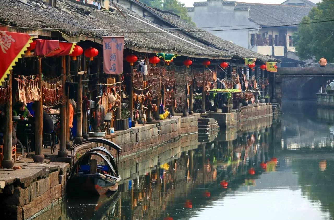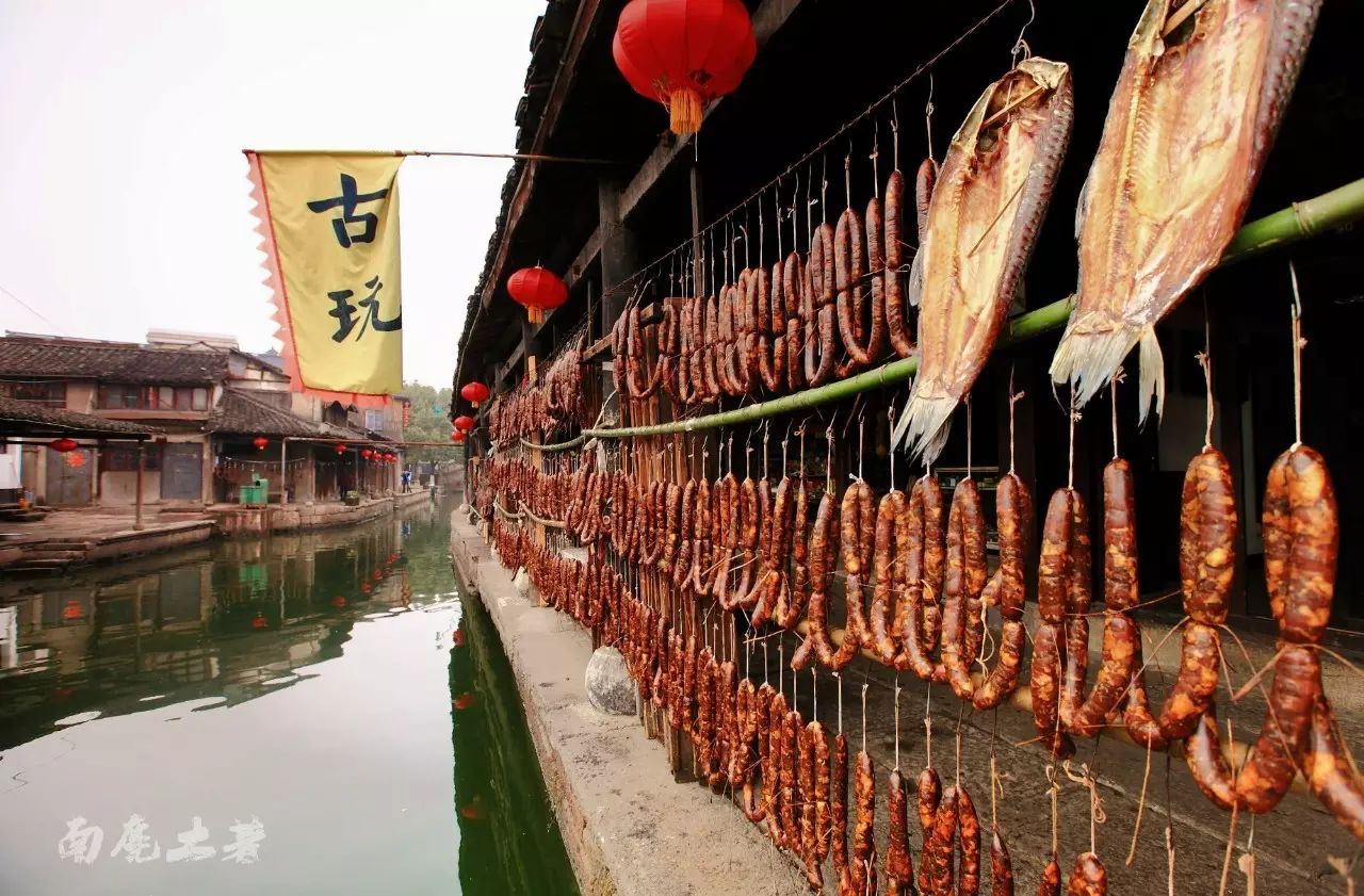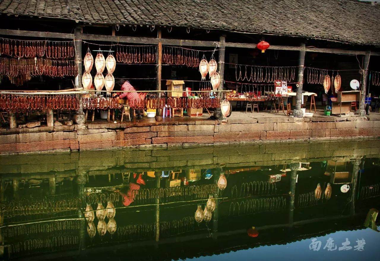 随着农历春节的临近,安昌古镇传统的年味也越来越浓,一串串红得发亮的手工腊肠、青鱼干、腊鸭、腊肉挂满了临河的廊檐,走在老街发亮的青石板上,浓烈的腊香味扑鼻而来,洋溢着喜庆祥和、古老淳朴的水乡地方风情。