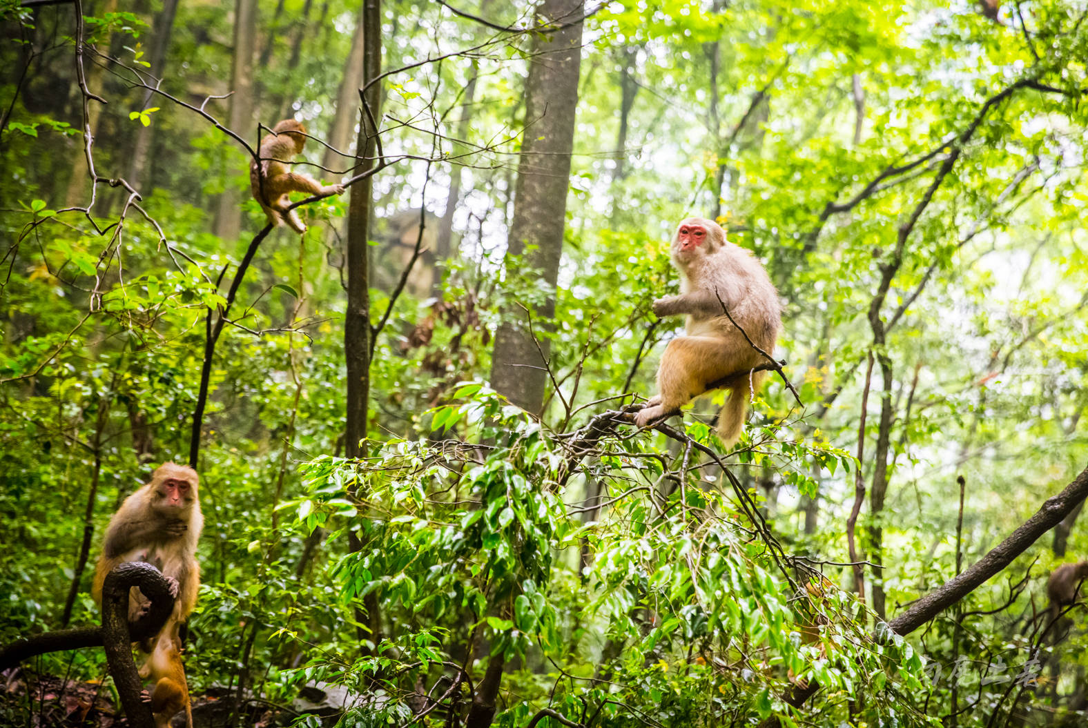 沿途的树林里有许多大师兄挂在树梢,叫声空谷传音,不禁让人想起《西游记》里的花果山来,在这条徒步道的另一头,确实还有 “花果山”、“水廉洞”的景致,早年电视连续剧《西游记》就是以它为花果山外景地的。