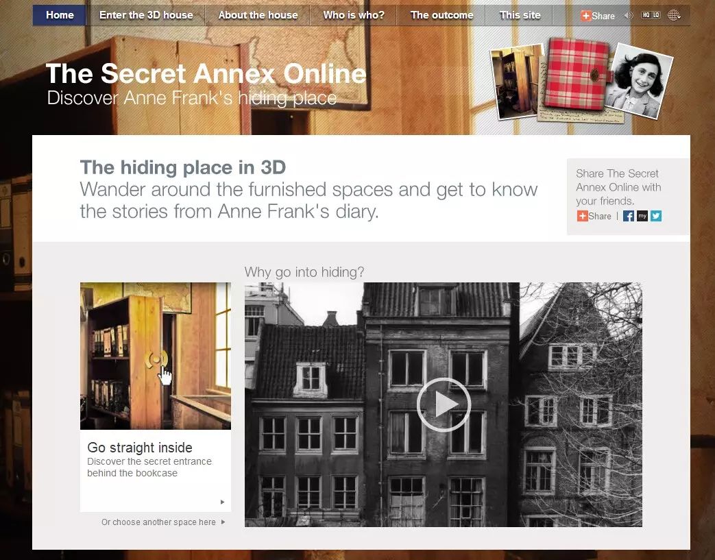 内容详尽,包括安妮的故事、时间轴和3D互动体验的安妮之家