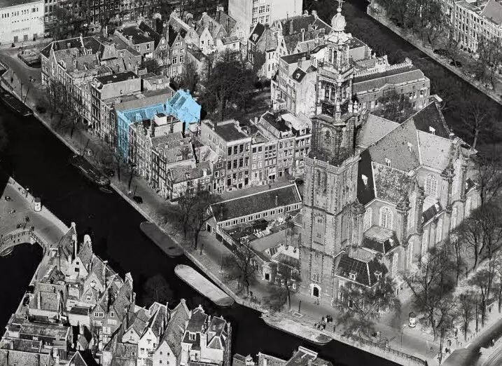 阿姆斯特丹市的鸟瞰图。内向的街区是两战之间西欧商业住区的典型面貌,中央的绿地是社区共享的开放空间和公共“后院”,这里虽然建筑式样传统,公私的区分却是清晰的,街区的结构并非像它看上去那样深不可测。第二次世界大战中荷兰犹太人的死亡率格外高,据说是因为荷兰有着非常高效的人口统计登记系统。