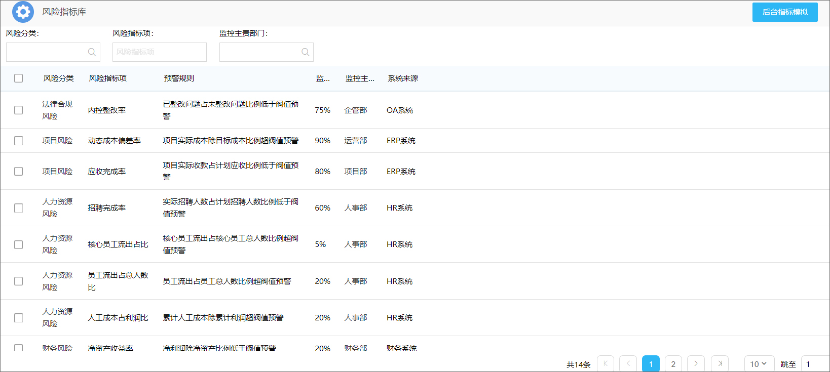 (风险指标库)
