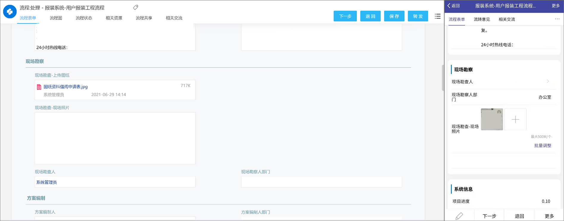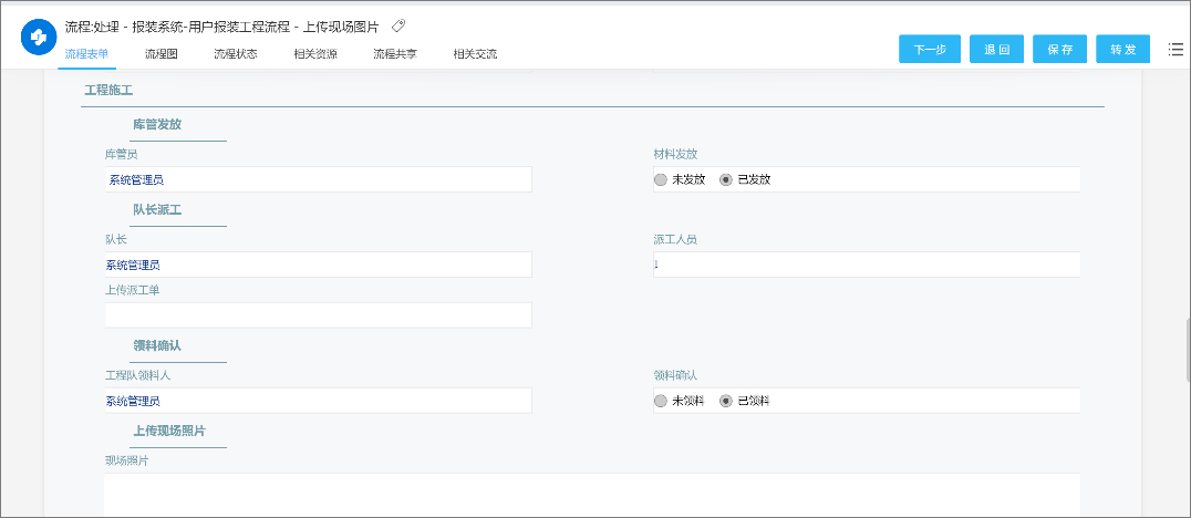 报装工程启动流程中,自动引用关联用户的申请信息,减少重复核对的工作量。