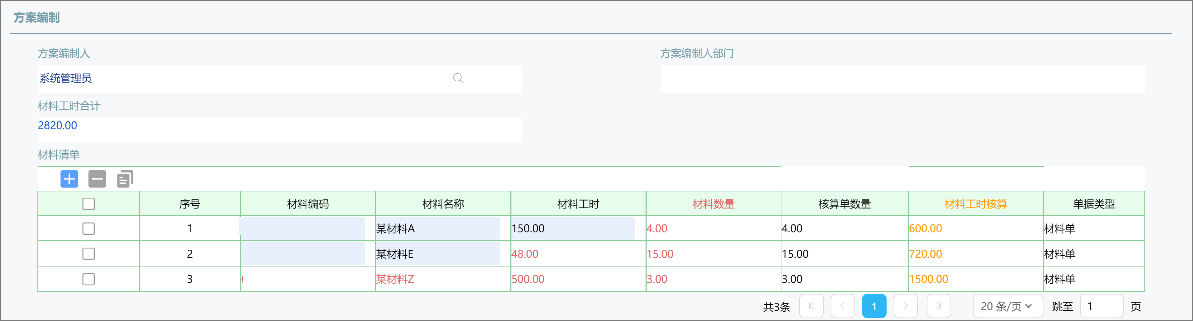 3、材料工时