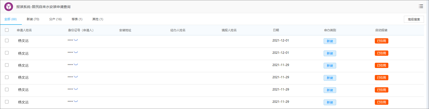 可通过台账随时查询、实时跟进报装工程启动的动态信息。