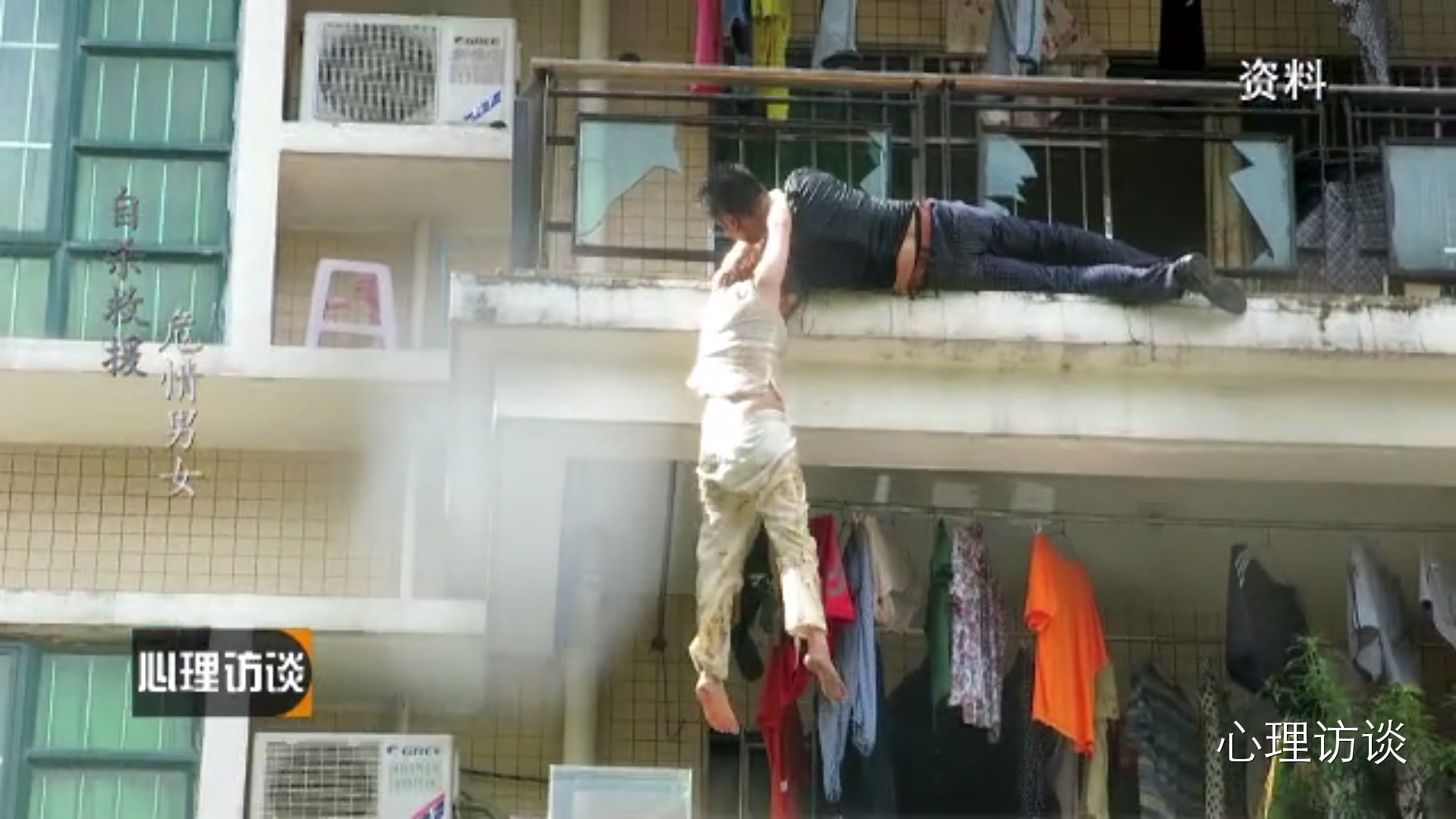原来,这两个人爬到自家阳台外面要跳楼,眼看惨剧就要发生的时候,令人匪夷所思的一幕出现了。