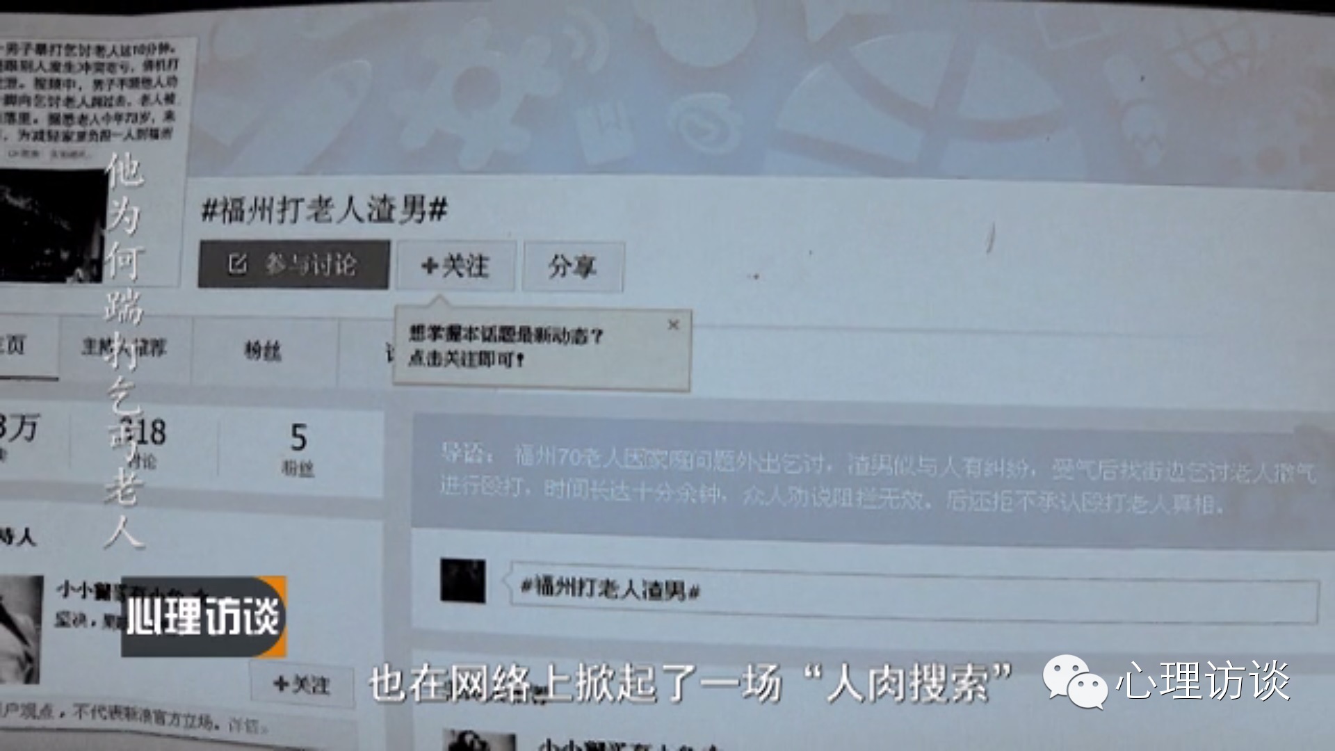 报社的记者找到了被打的老人,他说他不认识那名男子,事发时那名男子突然对他进行踢打,他也不知道是因为什么,与此同时网上也展开了对打人者的搜索,可是因为线索有限,打人者的身份一时难以确认,出人意料的是,几天之后,打人者竟主动站了出来。