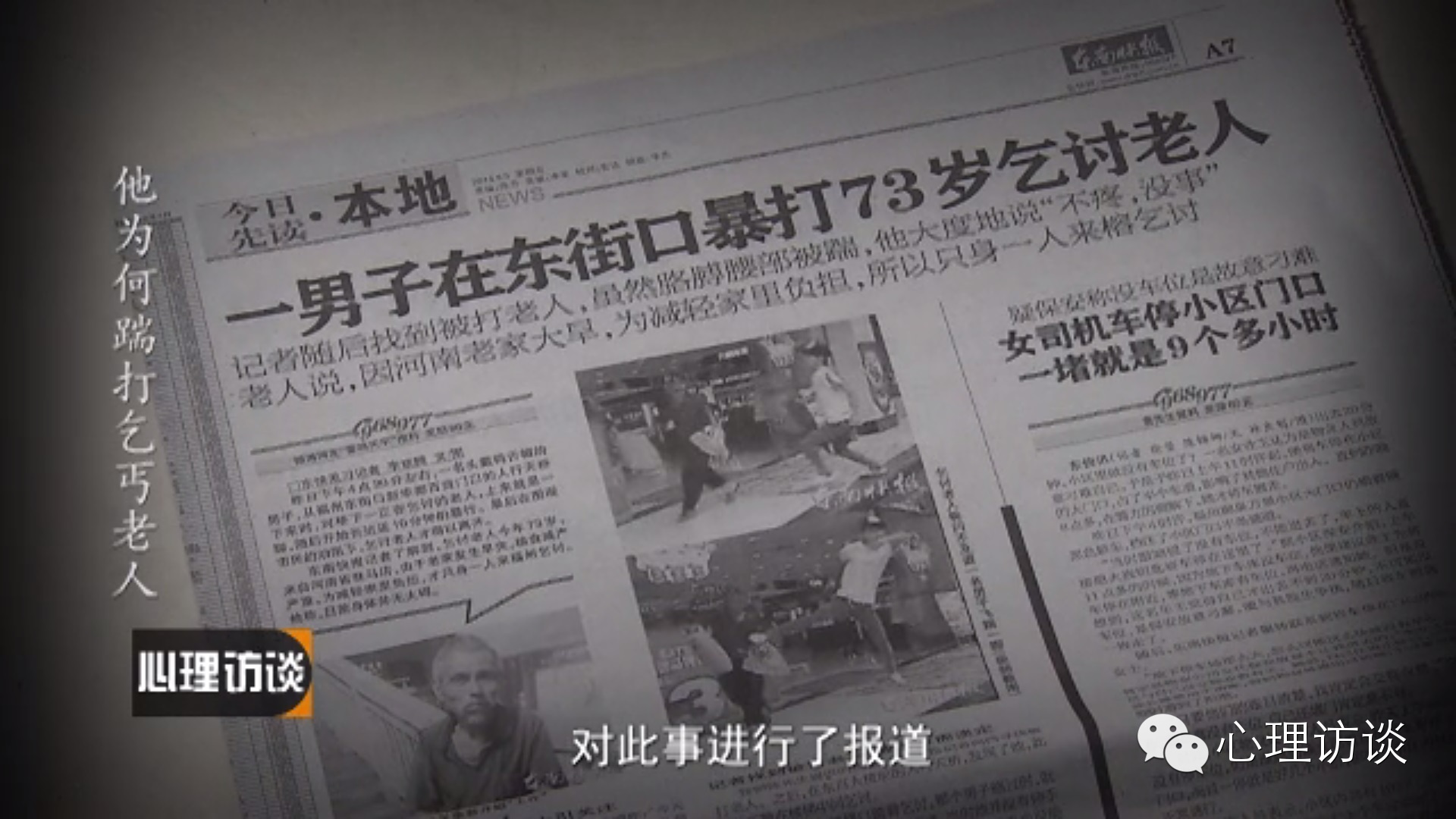 “残雪”的真名叫黄亮,今年19岁,他说打乞丐老人这件事是策划很久后才做的,那么黄亮与乞丐老人之间究竟有什么仇、什么怨,这件事的背后又有哪些不为人知的隐情呢,敬请关注CCTV-12《心理访谈·他为何踹打乞丐老人》12月26日晚22:00播出。