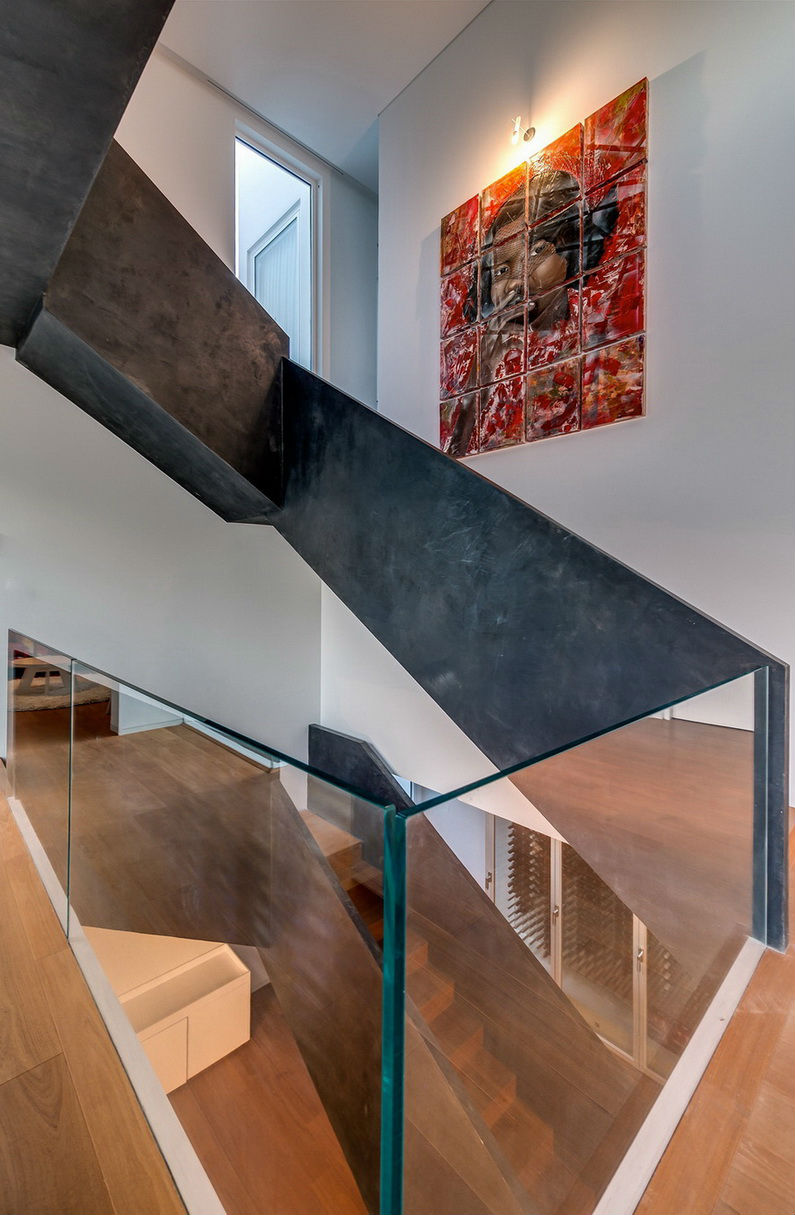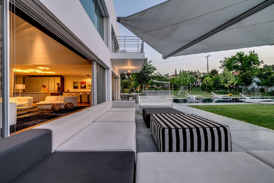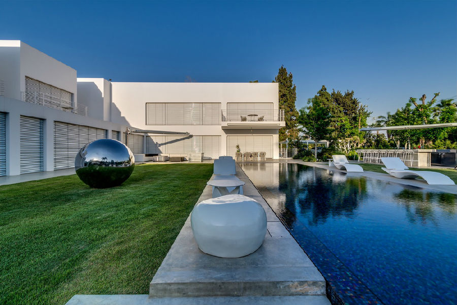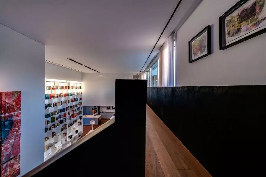该时尚豪宅由Néstor Sandbank事务所设计,位于以色列的RamotHaShavim,整个建筑以现代时尚为格调,客厅大书架,搭配意大利时尚家具,现代的线条,开放的空间,配上时尚挂画,展现了现代设计美学的精髓。