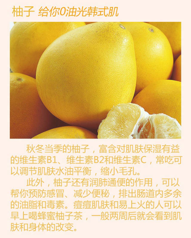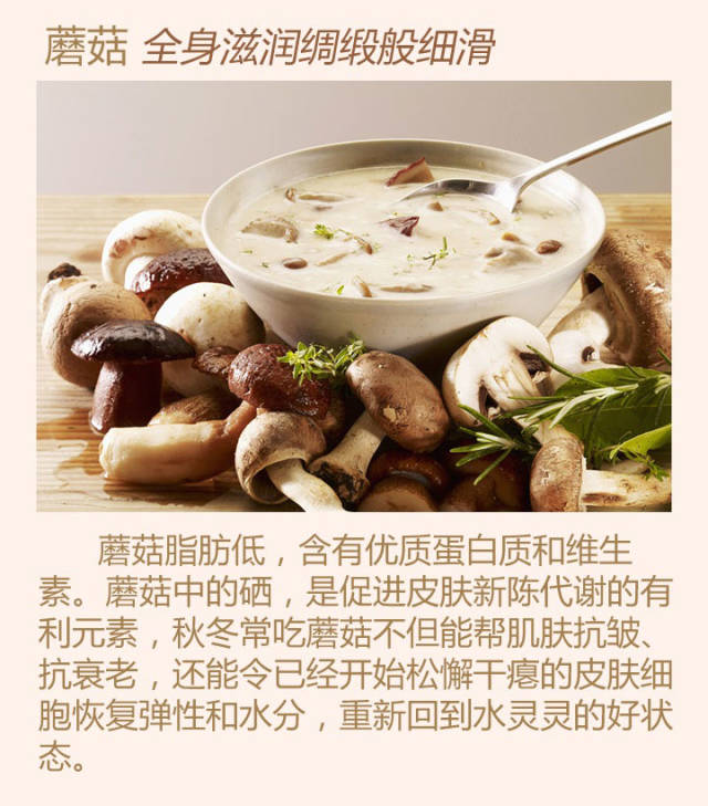 秋天是换季时节,干燥的空气,带来更多细纹、敏感问题,让皮肤加剧水分和养分流失。除及时更换适合秋冬的护肤品外,更要注意从饮食中摄取抗老元素,让美丽容颜与秋天同行!