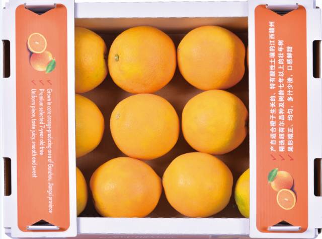 选自产区品质前15%的脐橙,精选较大规格,单果重大于300g,果径为75-90mm的果,自然成熟,不催熟,不打蜡,皮细口感佳、汁多且渣少。