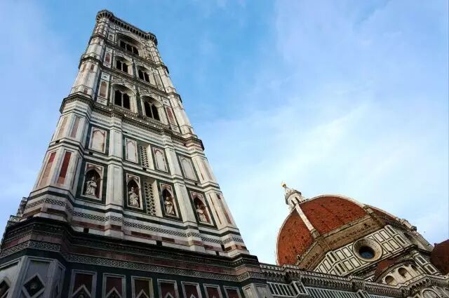文艺复兴运动对佛罗伦萨的影响,时至今日依然在当地人的生活细节中可见。从老桥(The Golden Bridge)出发,沿路经过乌菲兹美术馆(The Uffizi Gallery)、碧提宫(Palazzo Pitti)、市政广场(Piazzadell Signoria)、圣母百花教堂(Basilica di Santa Maria del Fiore)等有着浓厚的文艺复兴人文印记的建筑群,路的尽头便是意大利为数不多的哥特式钟楼——乔托钟楼(Giotto Tower)。