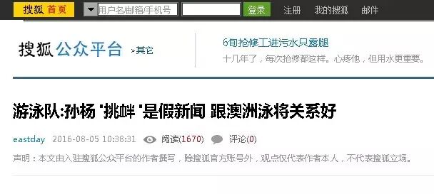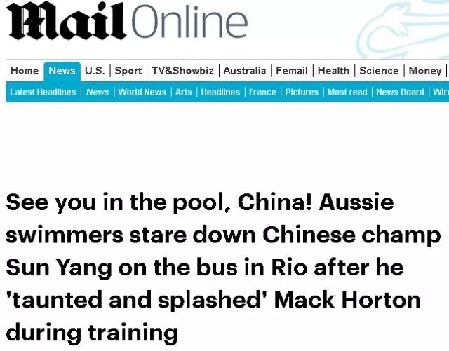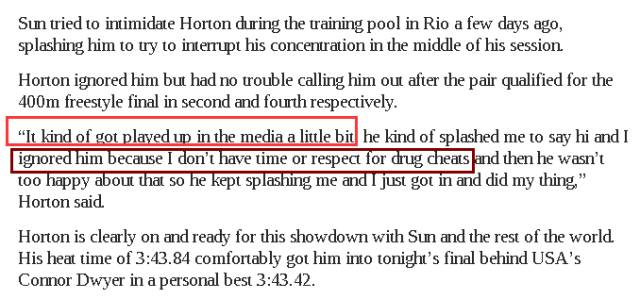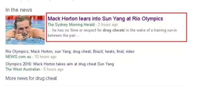 对,这就是澳大利亚媒体的对这件事的报道。他们不仅没有为这场精彩的决赛鼓掌,没有为孙杨和霍顿体育竞技层面的竞争而感动,而是把孙杨侮辱为了“嗑药作弊者”!