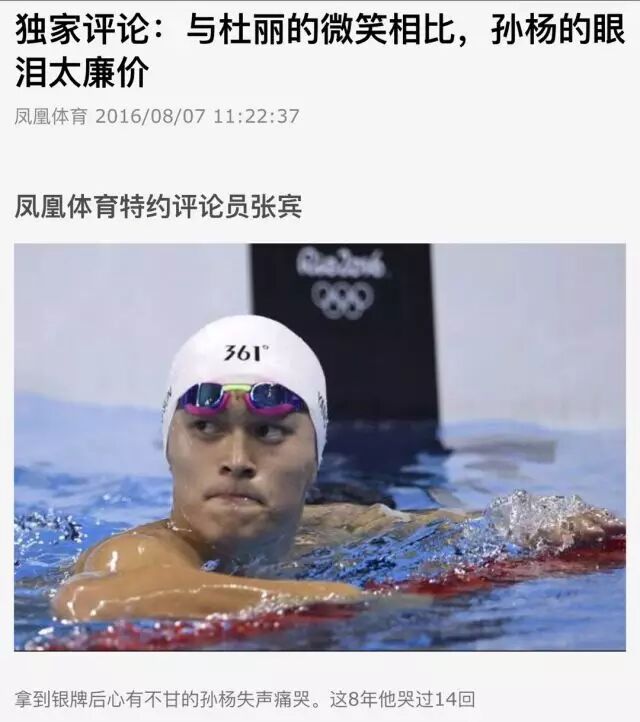 事情是这样的,今天孙杨在比赛结束后,被媒体拍到落泪,我特别想了解一下澳大利亚媒体是怎么报道此事的。毕竟,孙杨和澳大利亚的霍顿在泳池中的竞争确实激烈精彩,所以,我一度以为澳大利亚媒体会用一种“可惜”、“鼓励”的态度去报道孙杨。
