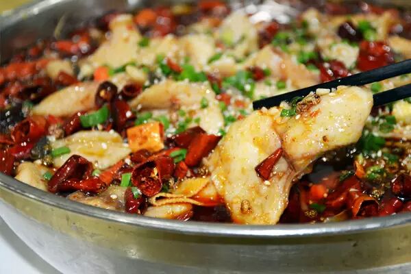 肥厚的鱼片让这一勺热油激发出另一种“鱼生”,入口先是鱼肉本身滑嫩的质感,而后是辣椒花椒等调料的辛辣,等半片鱼肉下肚,味蕾上浮现的尽然是辣椒干香的回味,看似粗犷的烹饪手法,竟能烹调出如此细腻的味道,用再多的形容都比不上“好好吃”三个字。