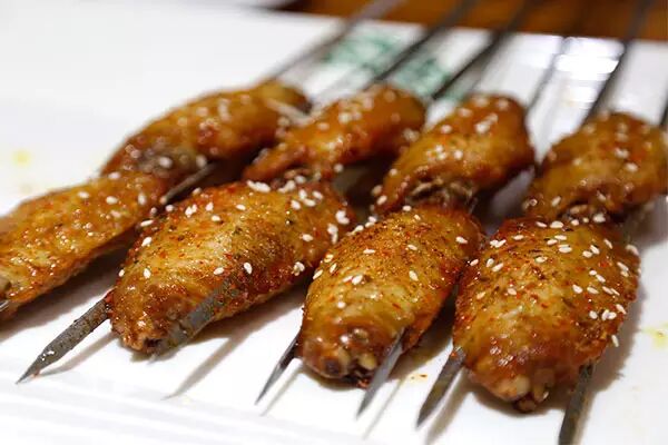 老树林烧烤,听这名字就有东北风,烤好的串,油亮热腾,撒上芝麻、辣椒、孜然佐料,外层有烧烤的香味,咬一口,内层是鲜嫩不柴的肉质,烤的流油的翅中撒上一层佐料,外焦里嫩,唇齿间都是肉质和孜然留下的香味。