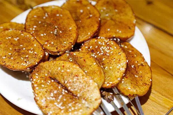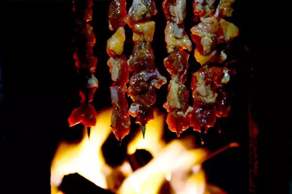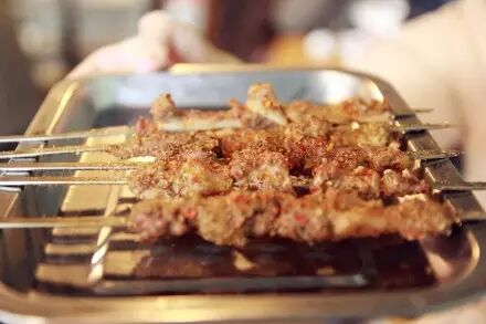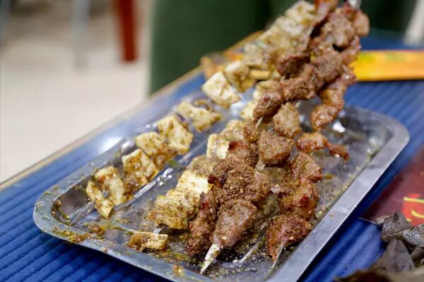 果木焖炉烤羊肉,挂着一面“天下第一串”的旗号,每串重量为一两半的羊肉串10元,大块挂烤,看着就让食肉动物们欲罢不能,也是我个人对这家店最满意的地方。十几分钟后,孜然香气扑鼻,增温解馋下,再小酌几杯,真是妙趣横生,别有风味。