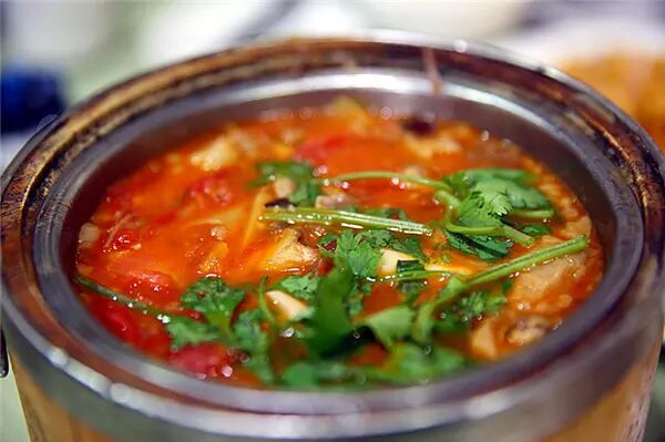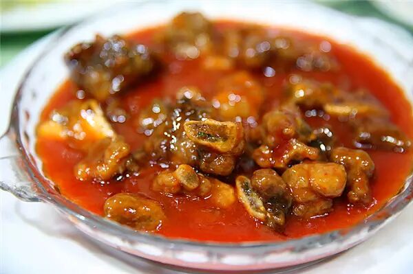 喜欢牛肉的童鞋可一定要点这道番茄牛腩咯:色泽鲜艳,甜酸咸口,肥烂不腻。牛腩酥烂,汤汁粘稠,一下子这么多赞美的描述词汇是否已引发你味蕾深处最敏感的哪个部位?来两勺拌饭是最好的选择。