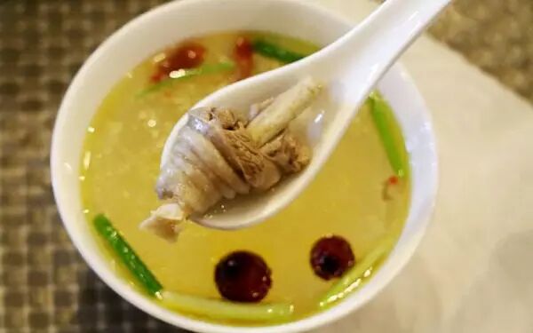 信阳人大抵都知晓,黄心菜是家常菜中常见的一种,炒菜、煨汤都会用到。黄心菜炒千张这道菜同样是用料很简单,口味清淡。心心念念的清炖固始鸡汤不能不赞一个,鸡汤刚上桌时看起来飘了一层鲜黄的油,本以为会很油腻,喝起来丝毫不感觉到油腻,香气纯正、味道咸鲜,鸡肉也是蛮嫩的。