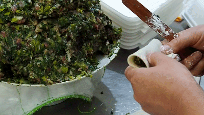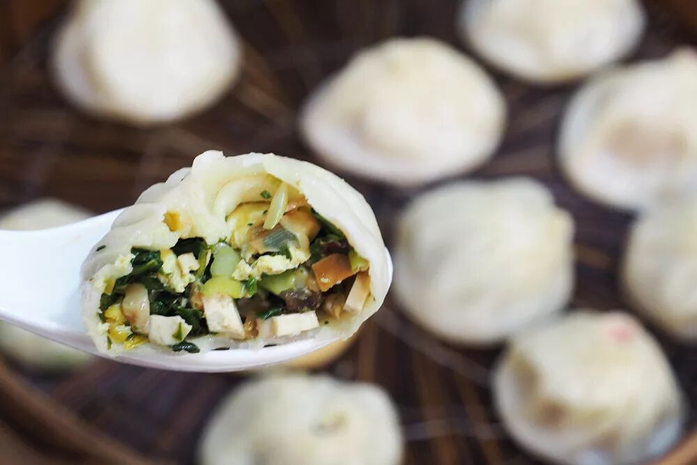 上海青等蔬菜配上猪肉馅儿一点也不会腻。