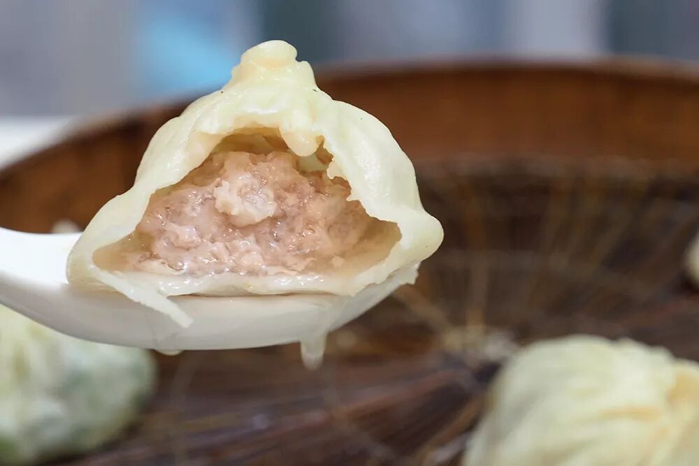 汤包放入笼屉大火一蒸,便成了晶莹的汤汁。
