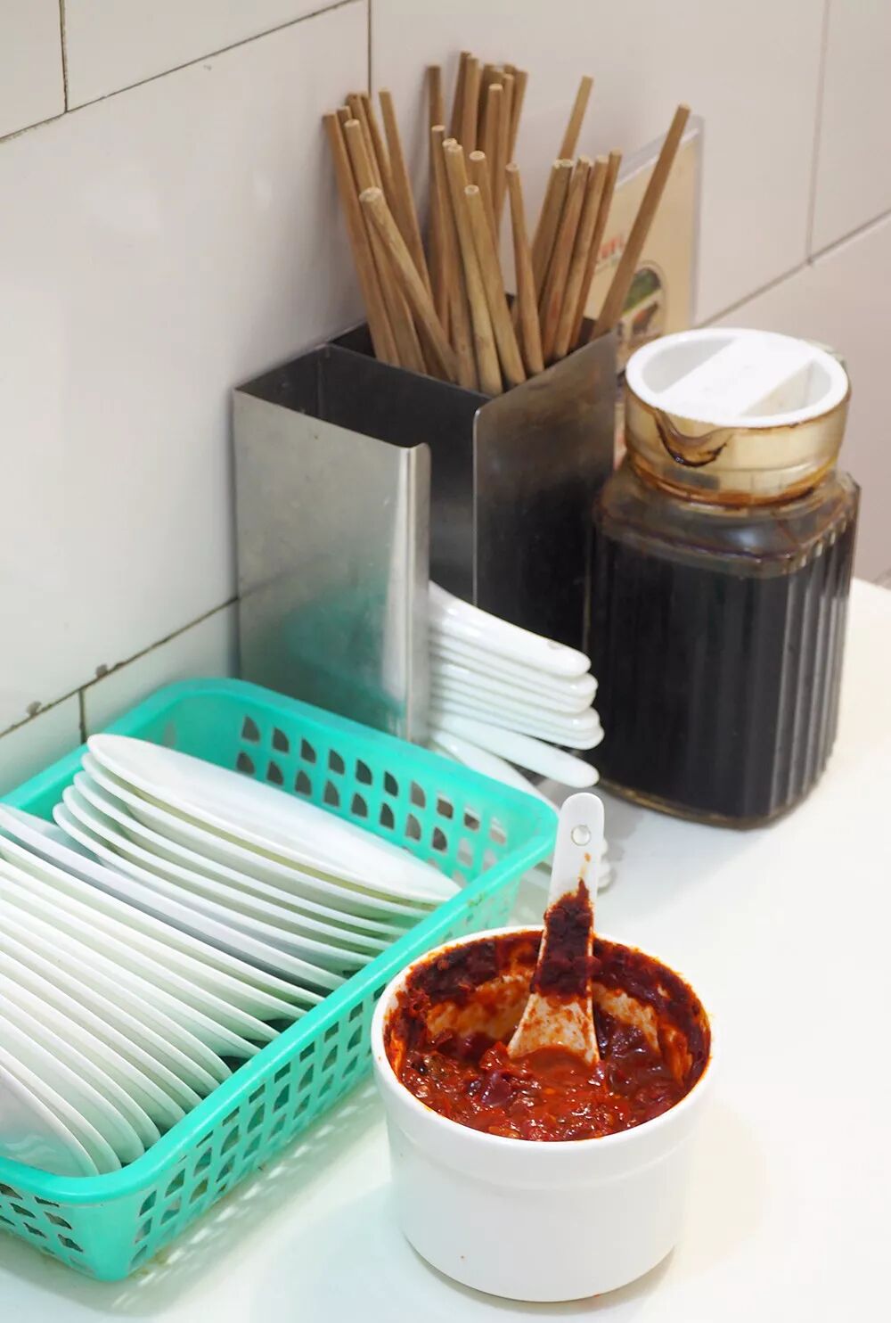 此时配上香醋、还有店家秘制的辣椒酱再好不过,