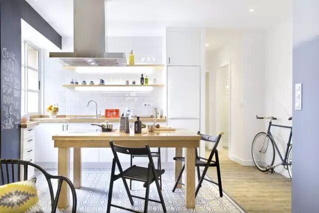 ▲为了明显的突出每个区域的不同功能,每一个区域都有一个显著的特征,如客厅的裸露的石头墙设计,呈现出休息区的舒适,温馨的感觉。而厨房选择了白色简约风格并且搭配花砖地板,LED照明突出了清新明快的装饰。