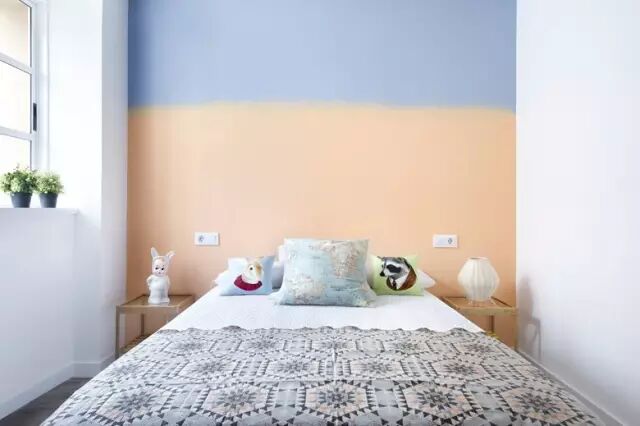 ▲卧室最大的亮点莫过于它渐变色的墙面,以自然的方式与天花板想链接,同时也创造出活力和俏皮的氛围。其余装饰选择白色,简单大方,毕竟,太多的焦点反而会分散注意力。
