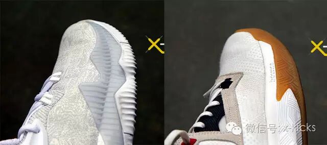 外底的抓地能力CL完胜,不同方向的急停都能够很好的通过外底进行制动。白色款CL虽没有采用马牌外底,但通过两星期的实际穿着,翻看鞋底磨损还是比较有限的,相信采用马牌外底的其他配色CL会更好一些。