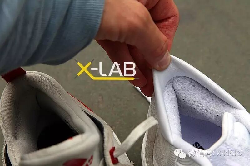 从图片可以看出,虽然都是低帮鞋款,但DL的高度还是要高于CL,特别是后跟部位,CL上像袖口般设计的后跟翻下后高度会更低。虽然两双鞋在鞋帮部位都没有针对防止脚踝外翻的设计,虽然内衬CL要明显厚于DL,但在脚跟的包裹上由于高度的原因,CL要明显差一些。笔者的尴尬经历提醒大家,在实战中一定要将鞋带系得很紧才能防止鞋子脱落的意外发生。。。