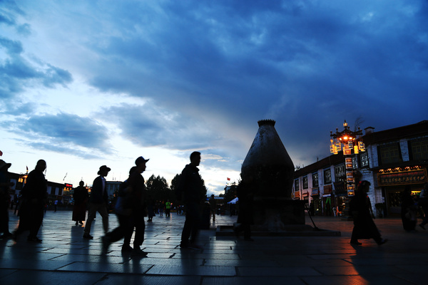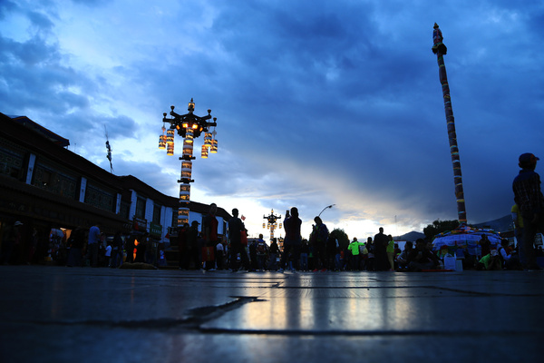 因此,于大昭寺前晒太阳,是我在拉萨最喜欢做的一件事。除了去仓姑寺茶馆喝杯甜茶,大多数时间都留在了大昭寺前。白天晒晒太阳,晚上若能看一场月色,那么这一整天便就没有荒废了。选一个月夜,这在拉萨是常有的时候。