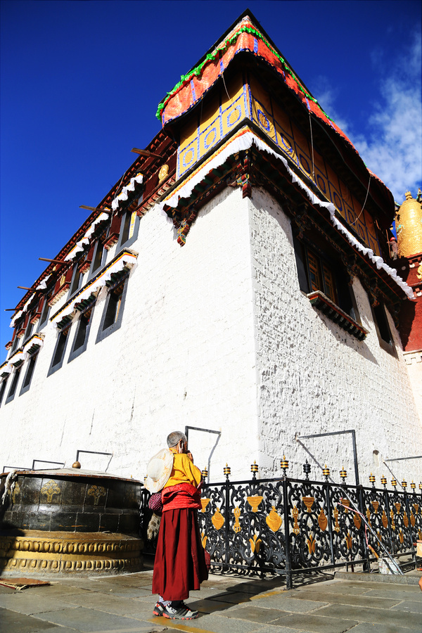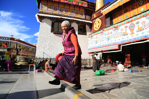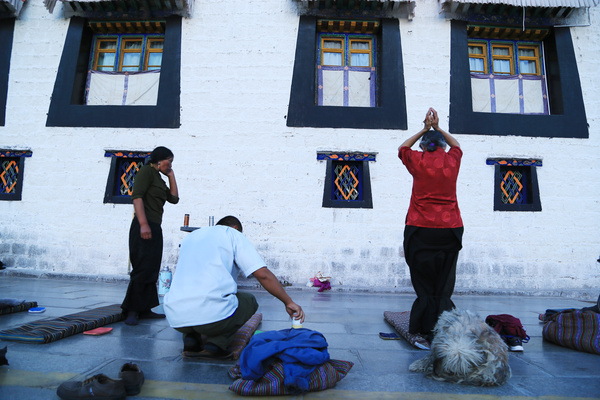 如果你感到坐在大昭寺跟前是一种随波逐流的话,那么就去有阳光的地方,无论是广场还是街角,只要是在拉萨,任何一个地方都能使眼前的世界犹如旅行一般美好。那些炎热和狼狈,以及所受的折磨仿佛不曾发生过,当下回忆的那些不可思议的美景才是最美好的。像是在布达拉宫广场前,八廓街,以及大昭寺周围,那些在太阳底下一边诵经一边转着转经筒的人们,他们心中不正是因为有一份对美好的虔诚,才使得这辈子如此安然。