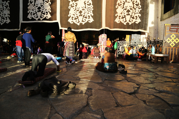 因此,我歇下了包袱,在佛前,站在一块青石上,匍匐在地,磕了108个等身长头。我终身难忘。因此,便对于在大昭寺前晒晒太阳的这份贪恋始终是戒不掉。我也不想戒,也不会去戒,此生能够安好坐在阳光下,该是多么庆幸。