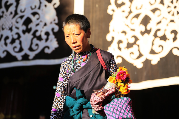 遇见的所有藏漂,以及天南地北的旅客都成了这广场上另一种意义的旅行和相会。我试图从他们的脸上寻找一点来往的踪迹。然而,太阳底下,阴凉处,他们的神色竟是一个模样。沉静,认真,远外看得见的世俗,近处看不见的杂念,在他们的脸上竟无半点儿痕迹。我们都是佛前虔诚的信徒,各自点着一盏酥油灯,默默修行。