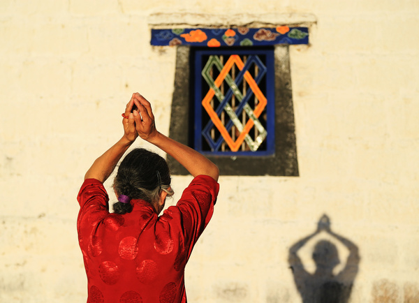 那些糟糕的人或事都会变成青鸟飞向云端。太阳洒落在石板上,映着的影子颇是慵懒惬意。人们或坐在寺院跟前的石阶上,或背靠着院墙的阴凉下,什么也不做,也不想,静静的晒着太阳,看着眼前这些身心只交予佛的虔诚世人。有时候整个下午都坐在这里,有时候甚至是一整天。一句话也不说,心中的火就像是烛台上的那盏酥油灯,摇摇曳曳。
