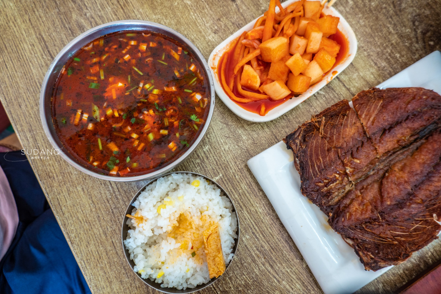 当地的牛肉泡饭值得一吃,也有狗肉汤、狗肉泡饭以及各类泡菜等等。由于隶属延边,二道白河镇的饮食习俗与南方小镇很不一样。可我最爱吃的还是铁锅炖(鱼),这是我来东北旅游必吃的一种美食。