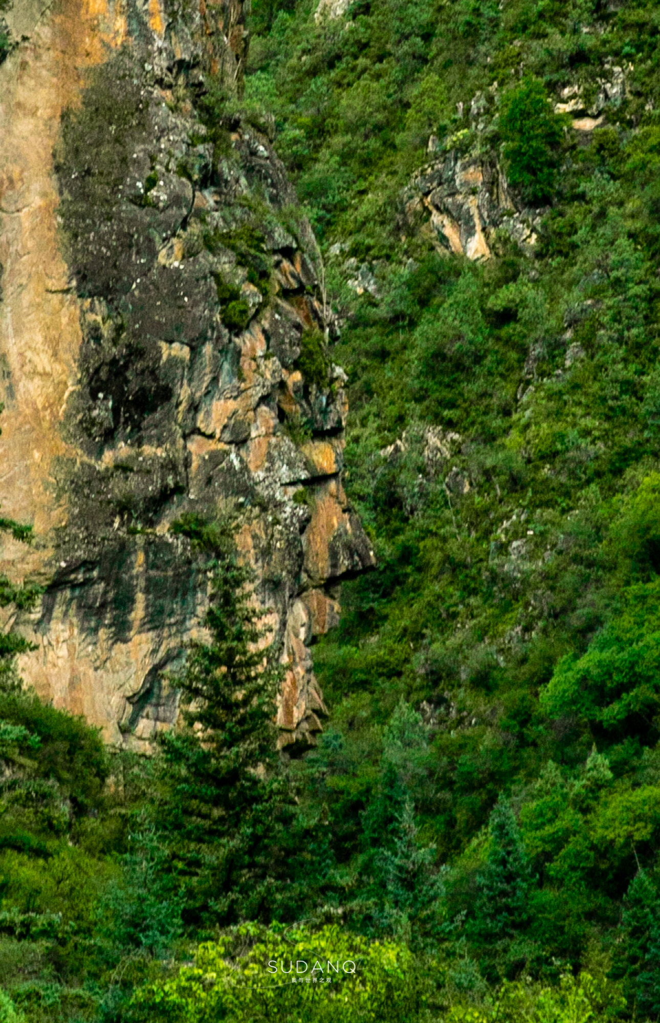 且在道场的对面,葱绿山林之间,一块凹凸出来的山崖神似人面像,当地人说,那是头戴盔甲的格萨尔王。