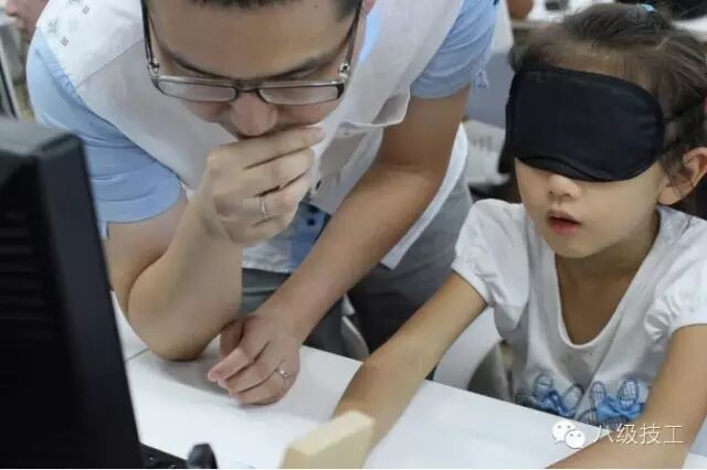 信息无障碍研究会工作人员辅助八岁志愿者体验信息无障碍——闭上眼睛也能畅游互联网