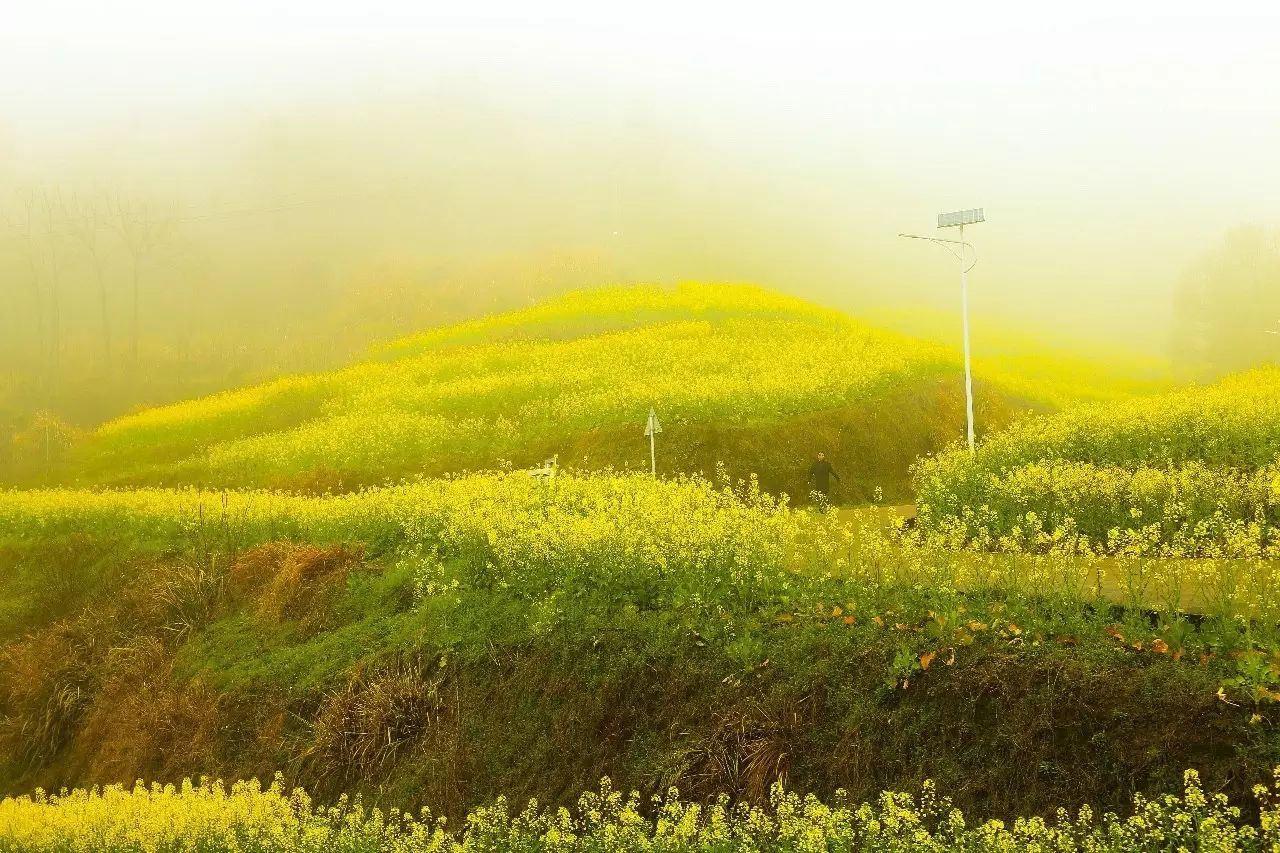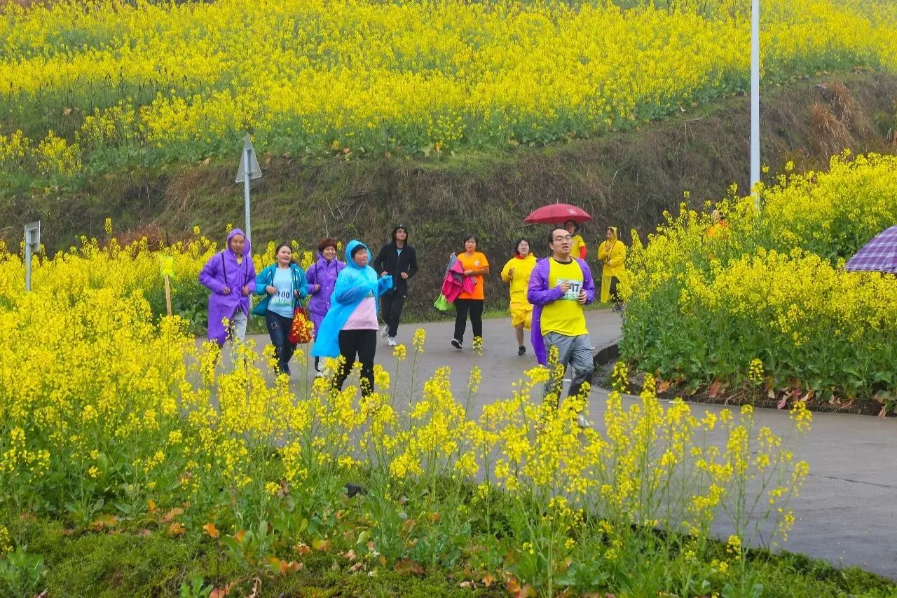 也许这是一场特别的跑步活动,全程只有4公里,区别于其他的跑步项目,这不是一场竞技项目,在花田中慢跑,释放生活的压力,感受大自然的魅力。也许在这里奔跑可以忘却烦恼,此时此刻脑海中只有艳丽动人的油菜花,在淅淅沥沥的小雨中蓬勃的生长着。远远望去,这里犹如一片金黄灿灿、随风翻涌的海洋,又如一块黄绿相间、层次分明的地毯。