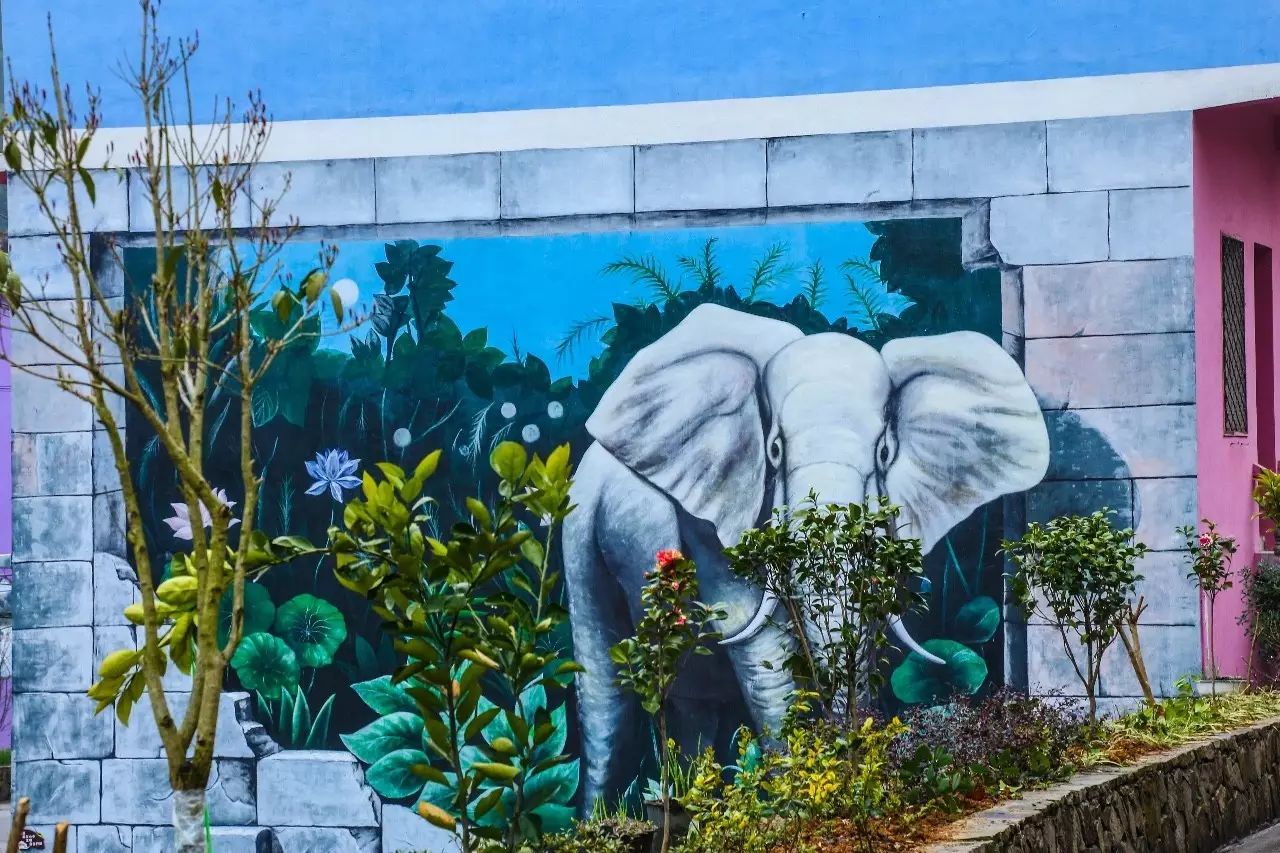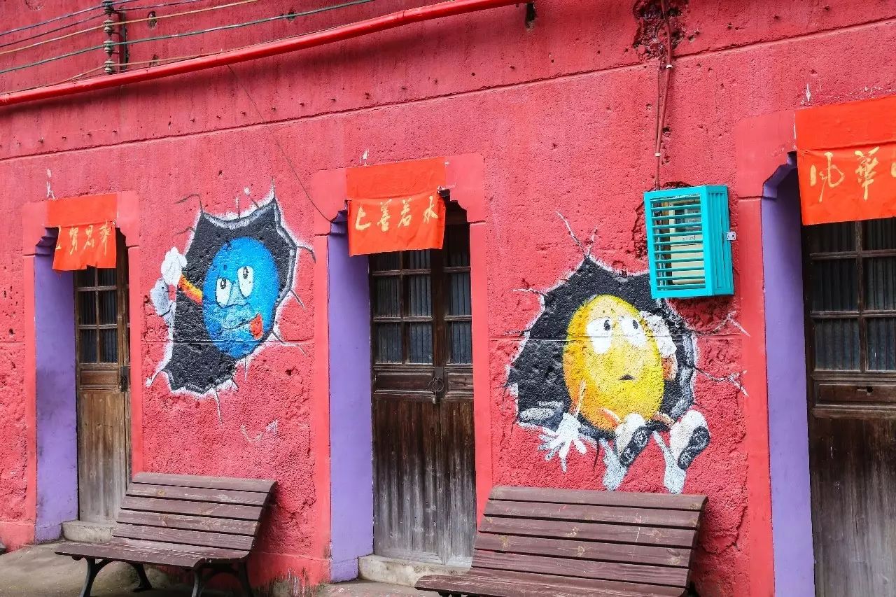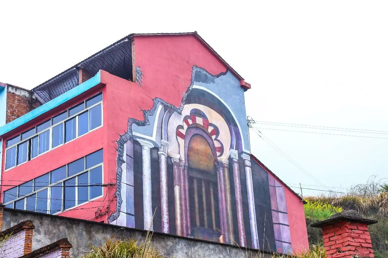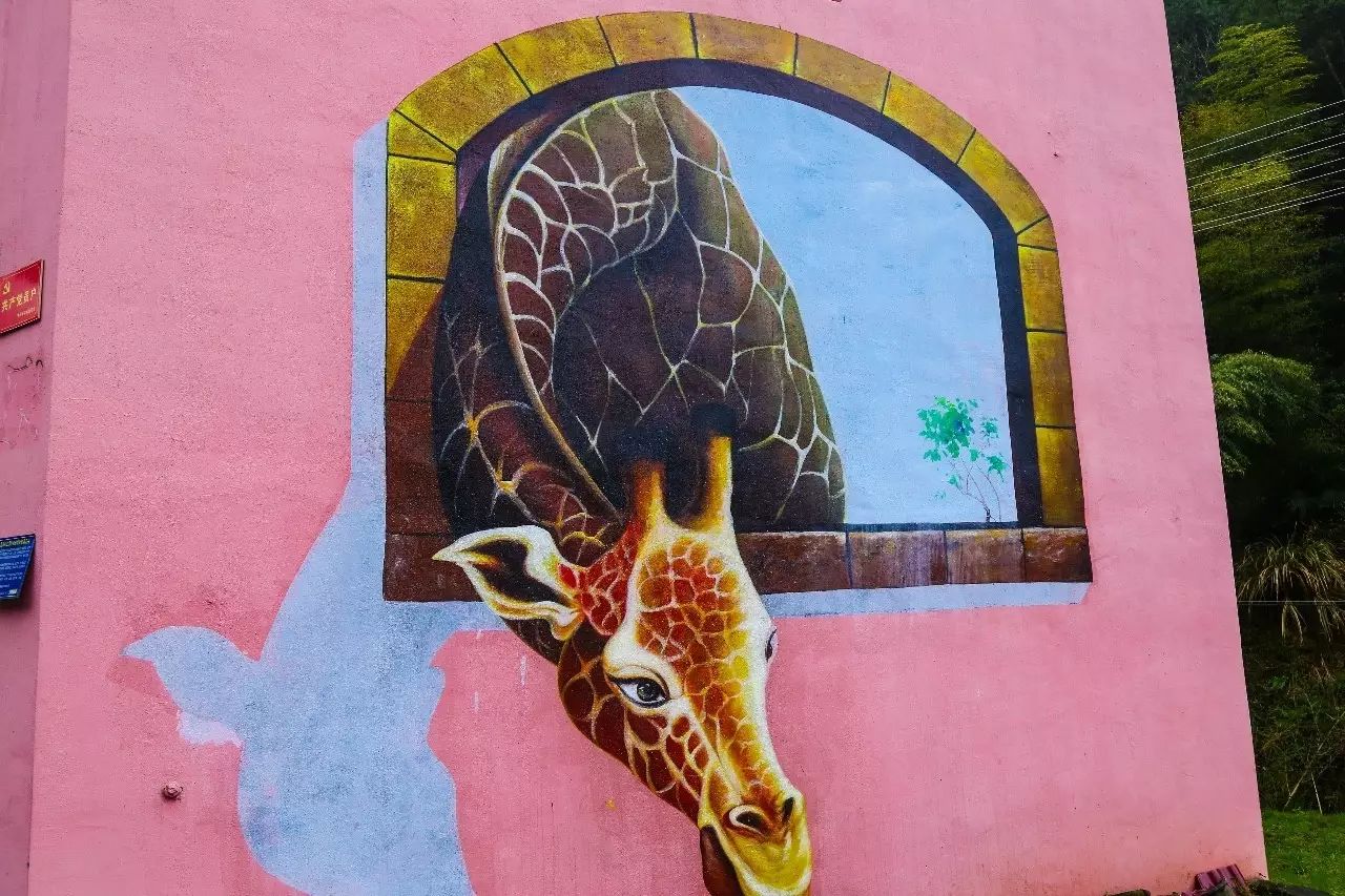 奔跑在乡村间,沉醉在彩虹色的梦中。一幅幅栩栩如生的3D艺术画跳上了农房墙壁和稻场,把村庄装扮成了童话世界。这里将现代与乡村完美的融合了,